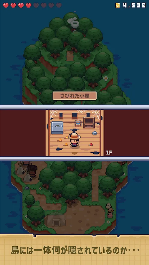 遊戲的整個冒險舞台打從最開始就放在玩家的面前了,這座無人島隱藏著許多秘密,玩家將需要使用十字稿、斧頭、鏟子等不同工具來收集素材,拓寬可使用的土地範圍,才可解鎖更多內容。