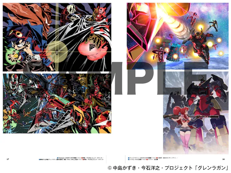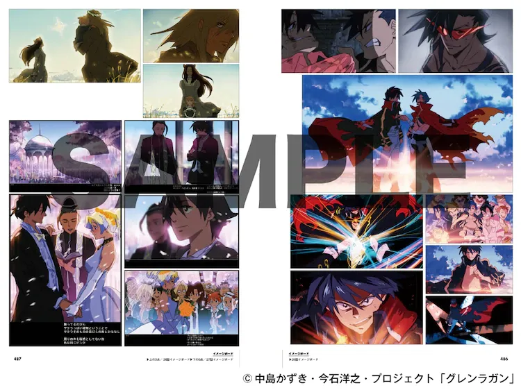 書中收錄了來自《天元突破 紅蓮螺巖》電視動畫、劇場版及雜誌插圖、DVD&CD封面的350余枚插圖,總頁數超過488P。如此良心的厚度,卻只售4400日圓…良心!