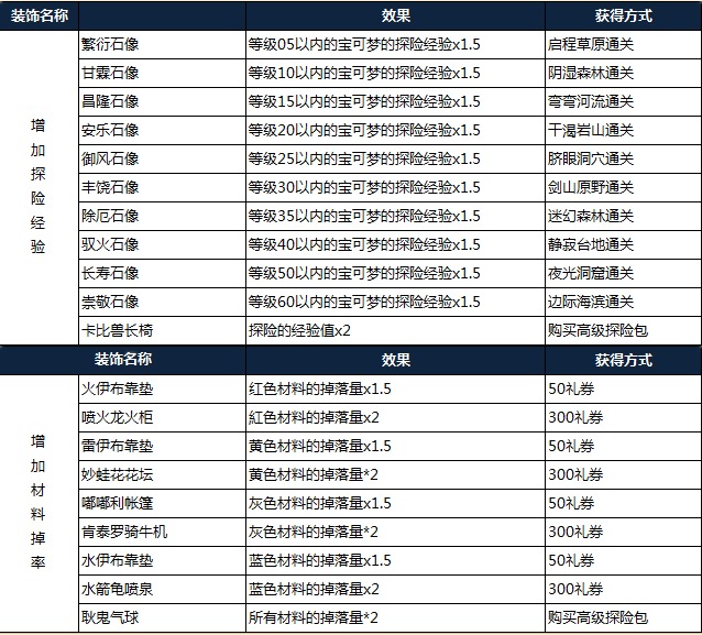 增加探險經驗/增加材料掉率裝飾