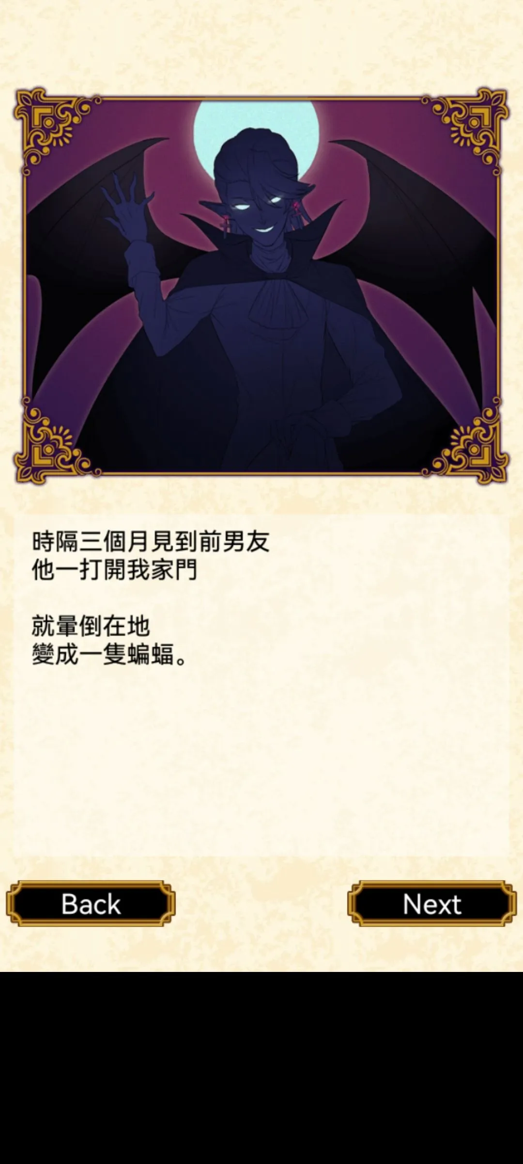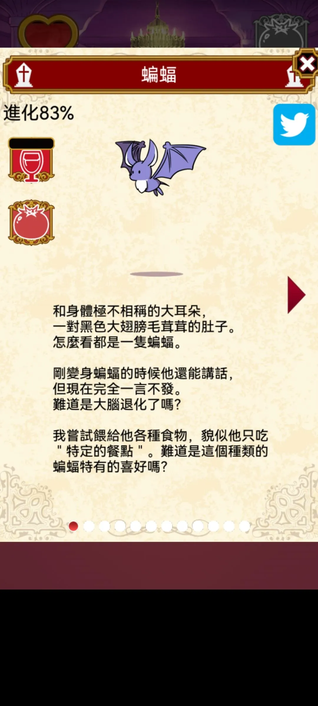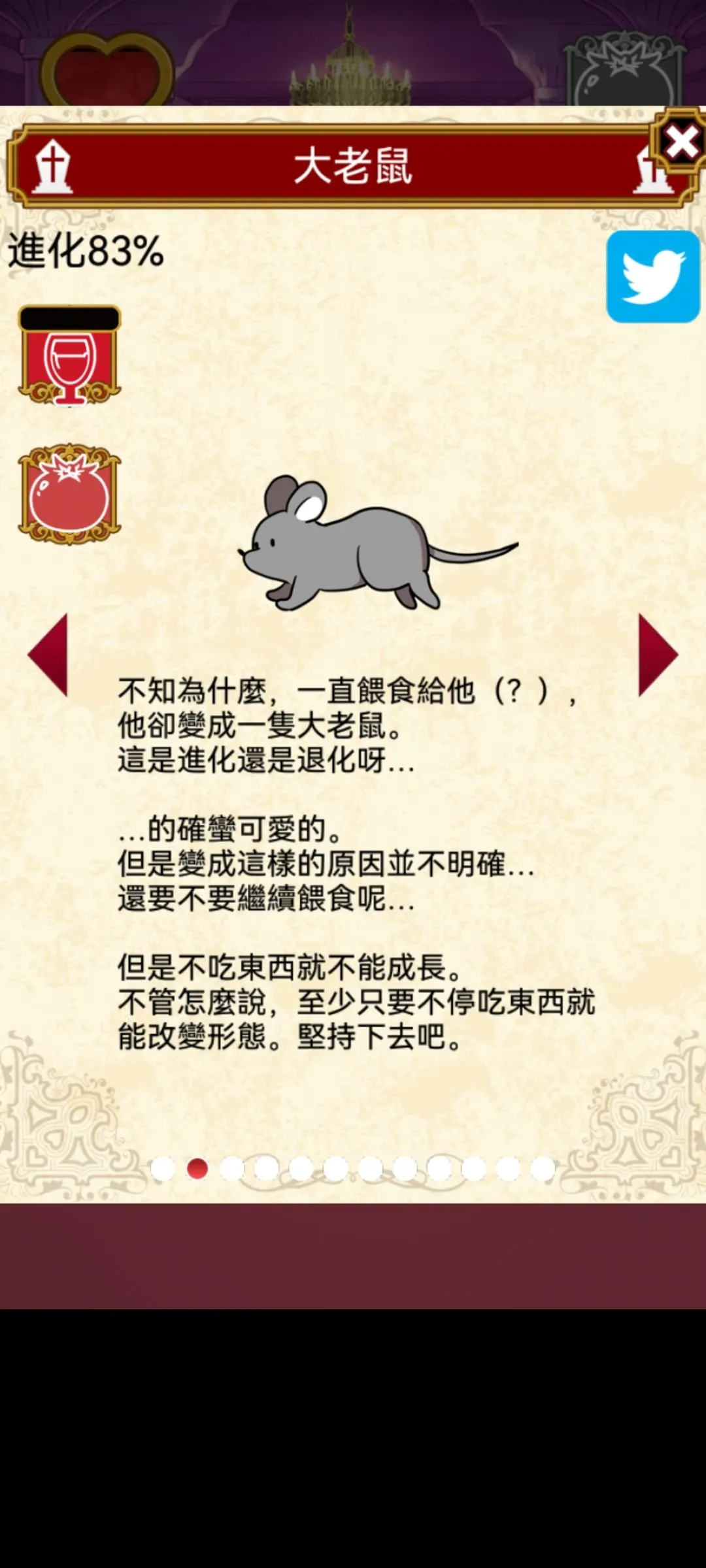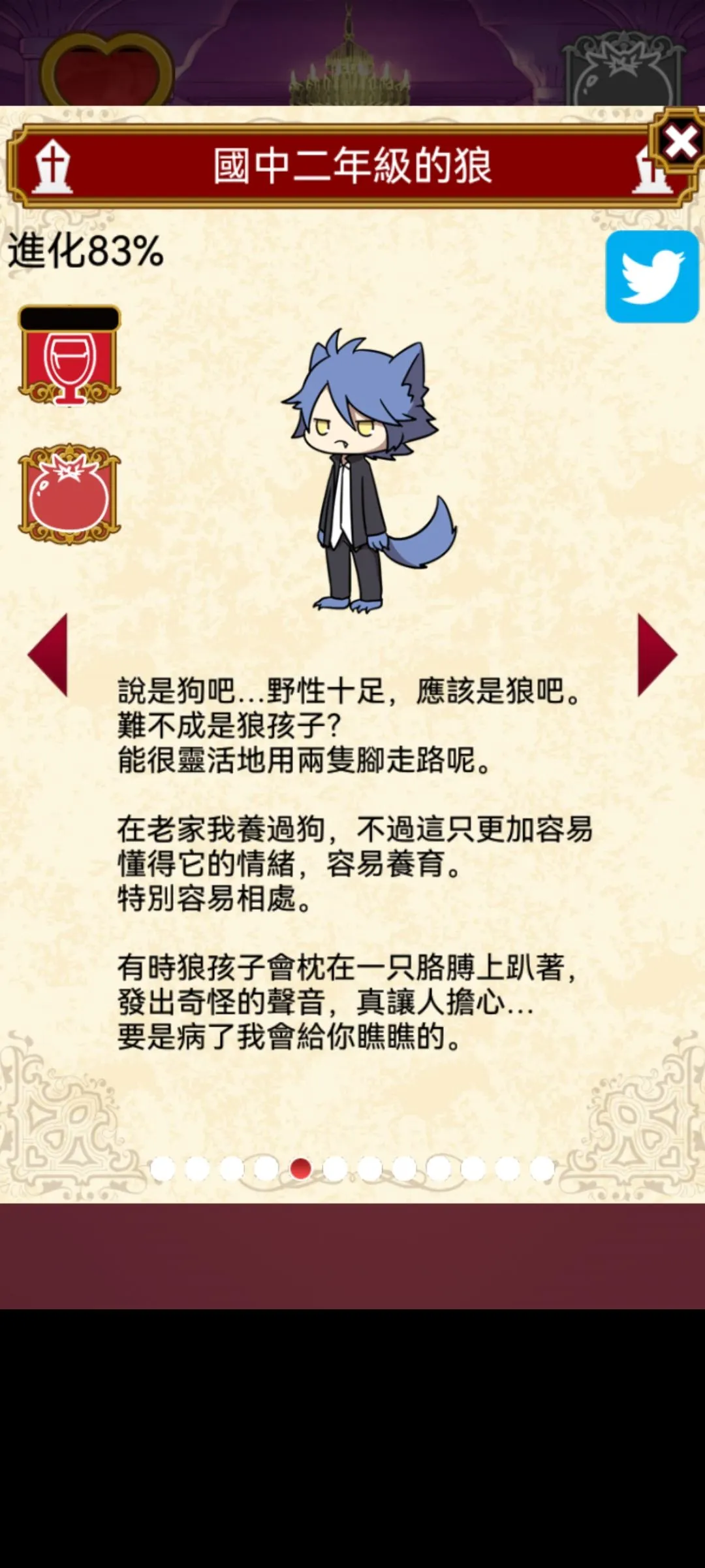 Rini 2022-01-29 13:01 筆記(1) 以下有剧透 本游戏全剧情+结局CG 故事背景,开端 成长图(我是在83%的时候截的图所以都显示83%)今天把结局打出来 结局b 自己独美 结局C 吸血鬼统治世界