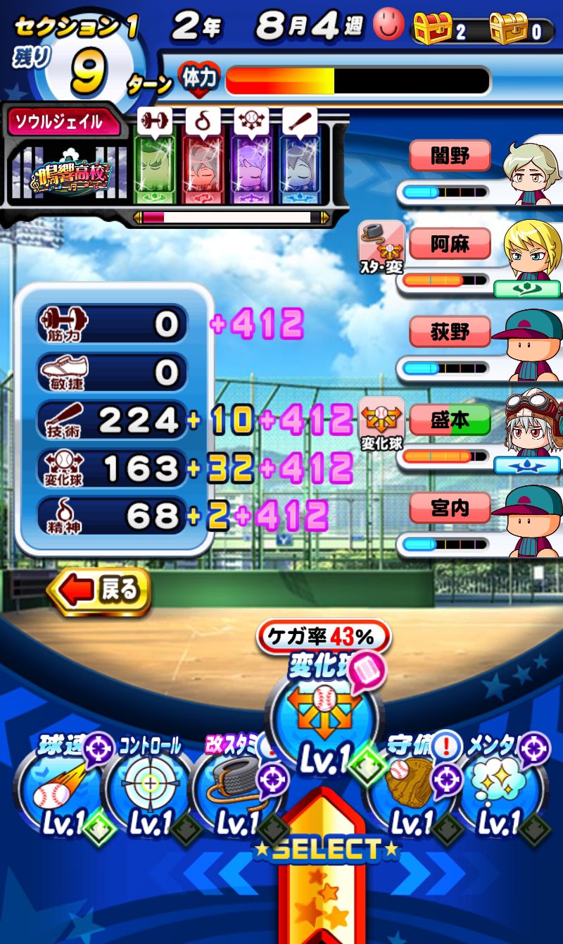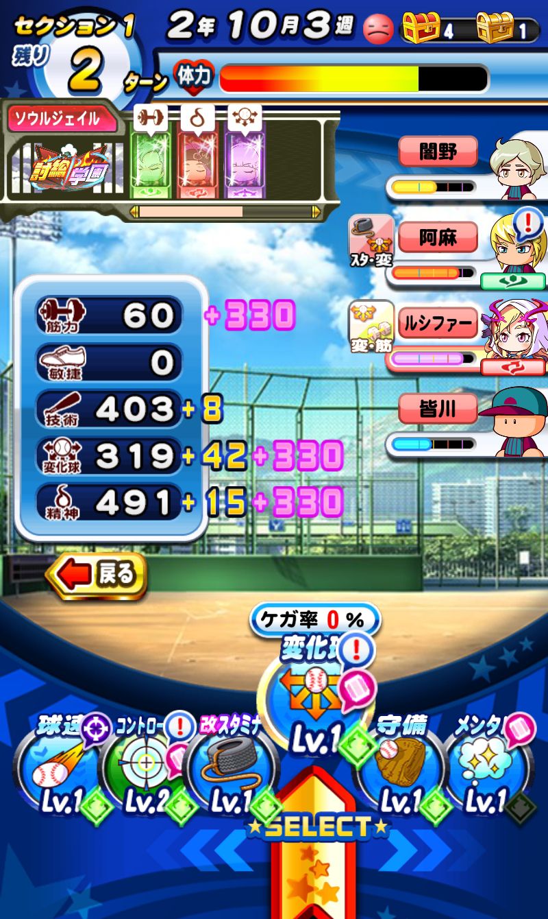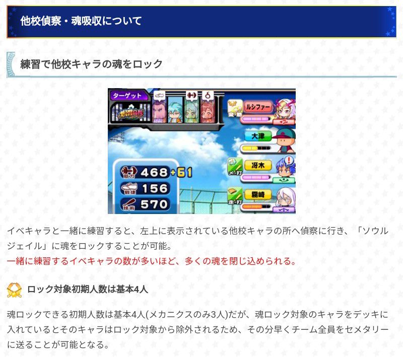 這邊同通常時的惠比留,偵查對象高校基本上都4名成員可以偵查,偵查過的成員會被魂鎖定在魂牢內,使當時練習項目跑出計量條,當魂吸收讓計量條歸0後會將成員的魂封入魂墓之中,當各高校的魂墓集齊之後就能使用各種效果的魂加成。…有點繞口的一段(-ι_- )