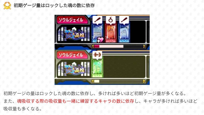 關於魂之幻影,當使用魂加成的回合結束後,每回合都會隨機出現在各練習項目(消滅之前)。