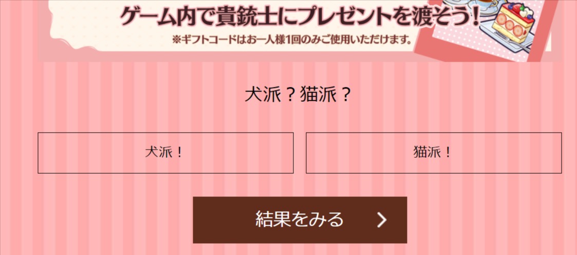 做下面的貴銃士情人節測驗可以獲得禮物兌換碼換禮物
