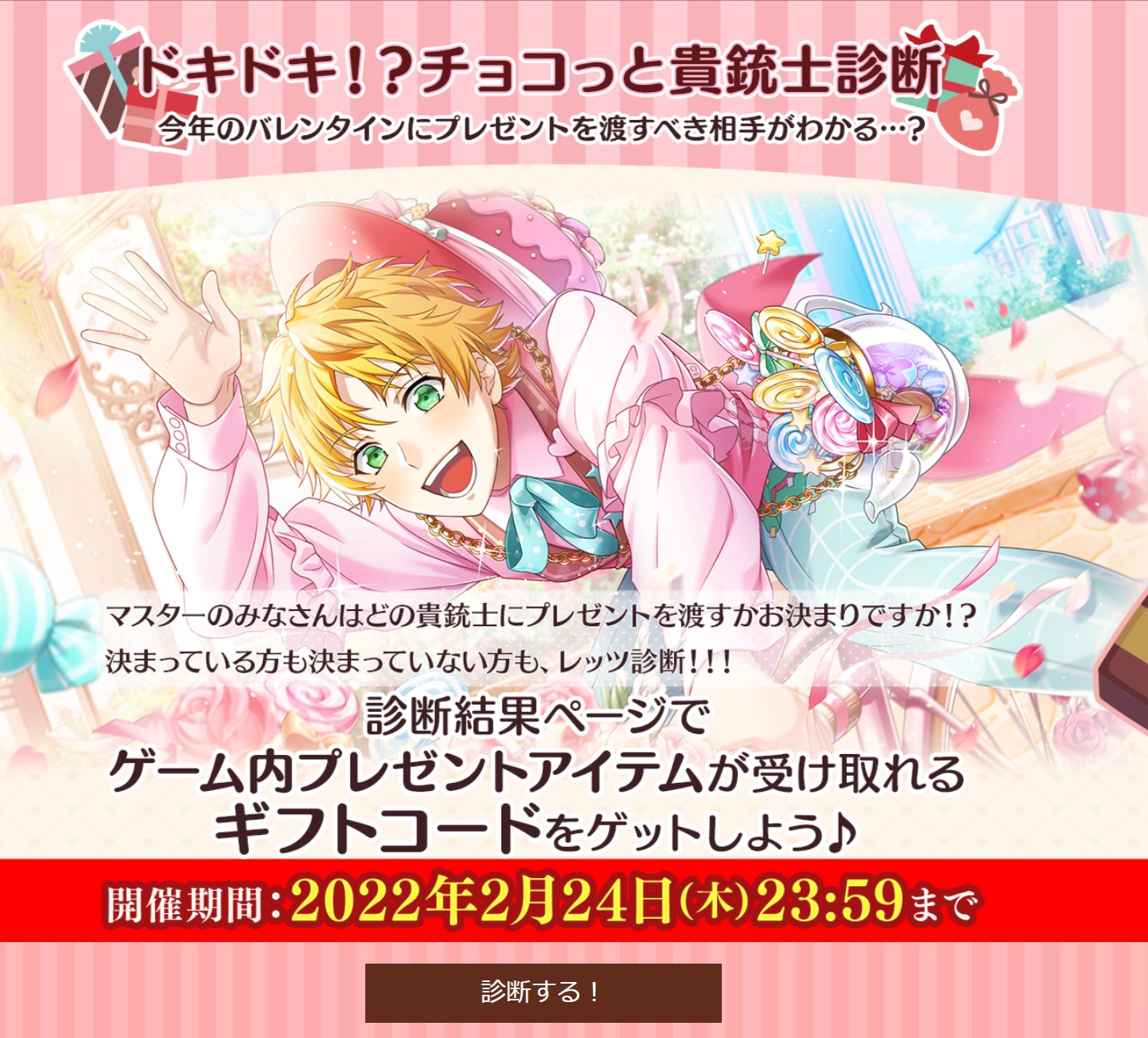 做貴銃士情人節測驗領禮物╰(*°▽°*)╯