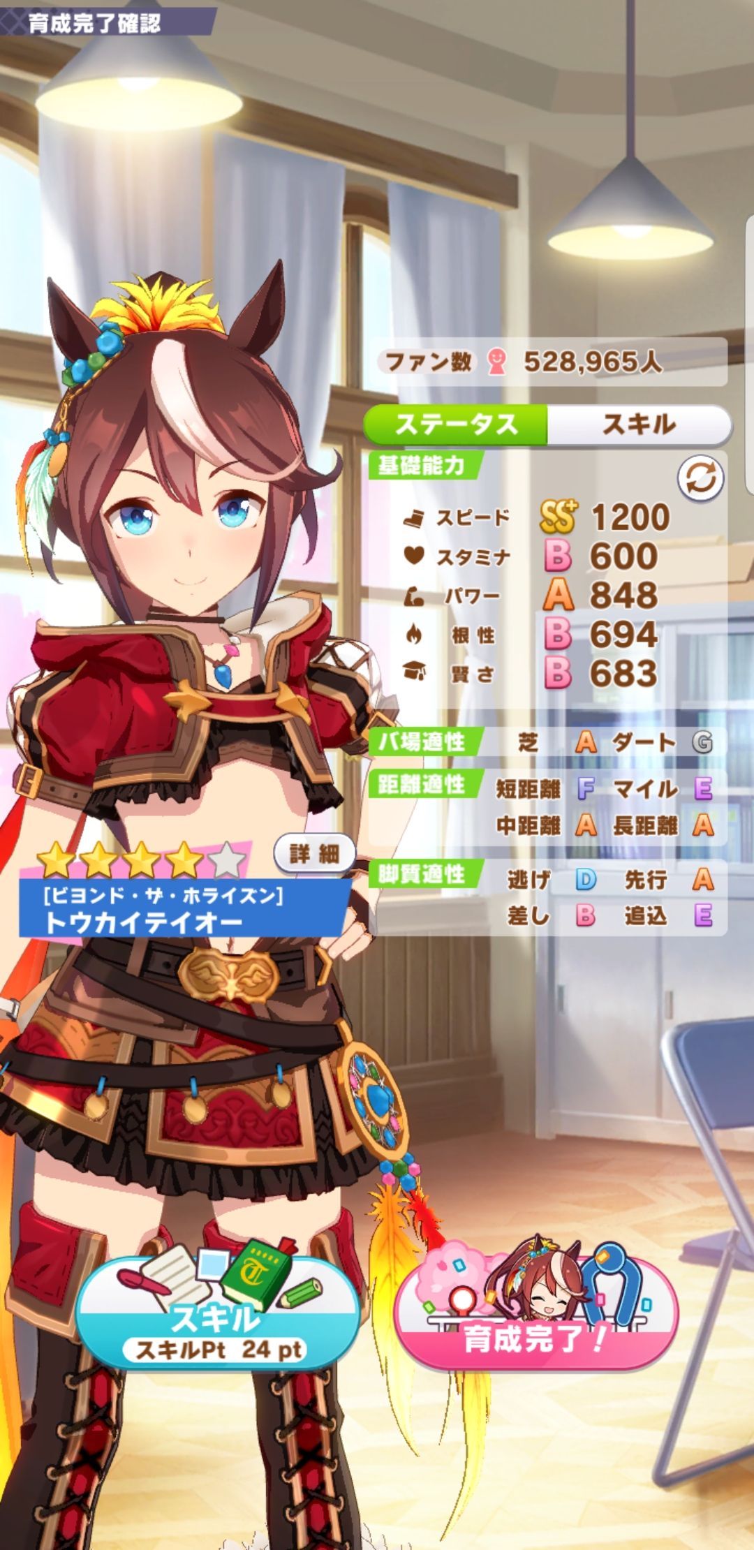@高星凛次 其实吧,你卡比我的还好可以多跑点比赛的(打比赛多收获点货币买点铁蹄,喇叭还有秘籍)你看我的帝王每次都是打20多场以上也不差什么属性不足(最后三场比赛建议每一场都备个35%的铁蹄,比赛完后胜利都会给16-18分到每一个属性数据的)