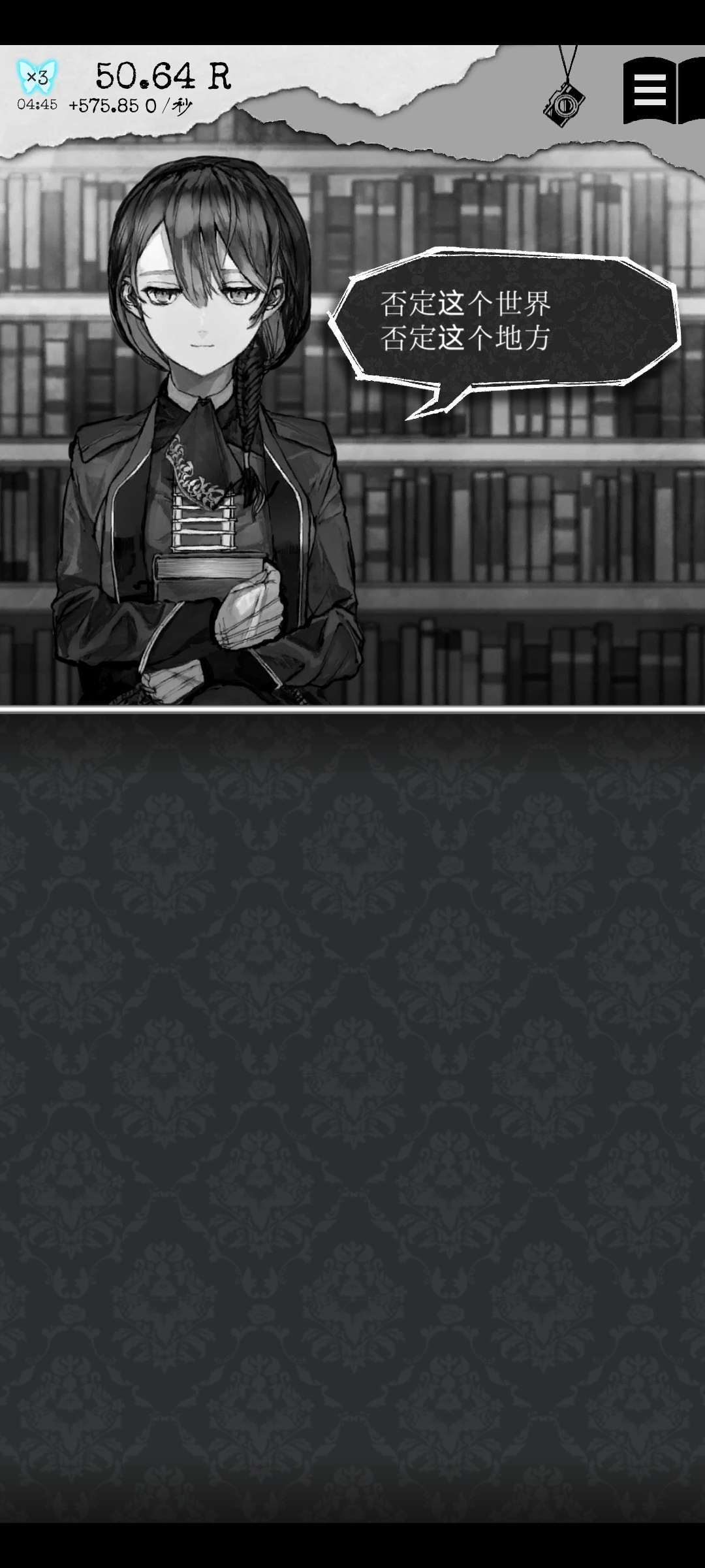 我觉得我不会把这个游戏删掉,除非我的手机坏了,换了一个的话,也会将这个游戏珍藏起来,非常适合自卑或者悲观主义等性格缺陷人群游玩,虽然黑白风,但不会很压抑,音乐很唯美,总共三个结局,真结局真的很好。另外这款游戏大概是书籍安利神器吧,每本书都有小小的句子摘录,收藏里可以点开看到,很不错。