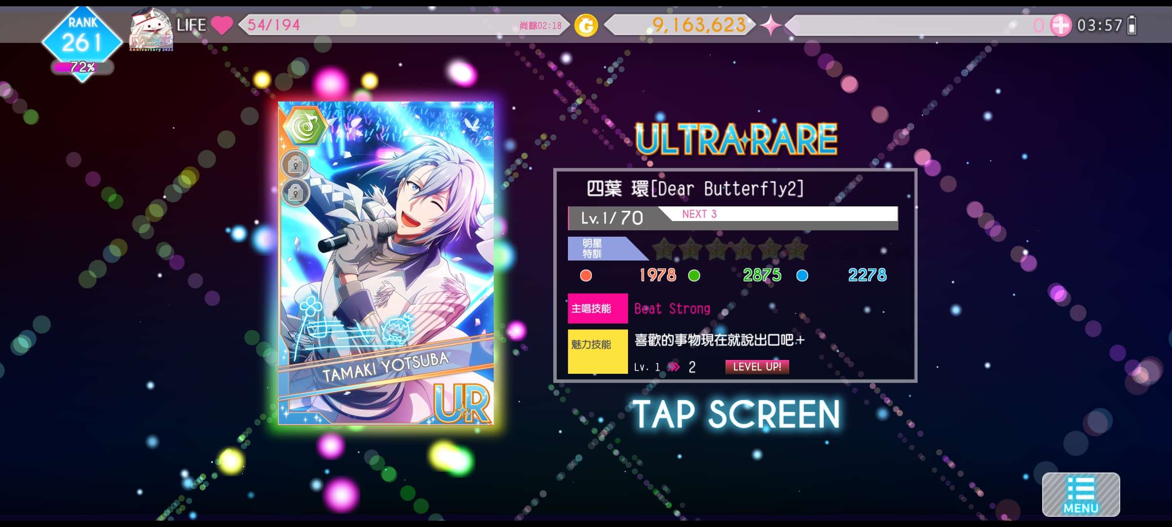 後面兩張限定SR是死命靠著僅剩的幾首還沒打過的歌硬擠石頭單抽的(抽的時候心臟差點停了)