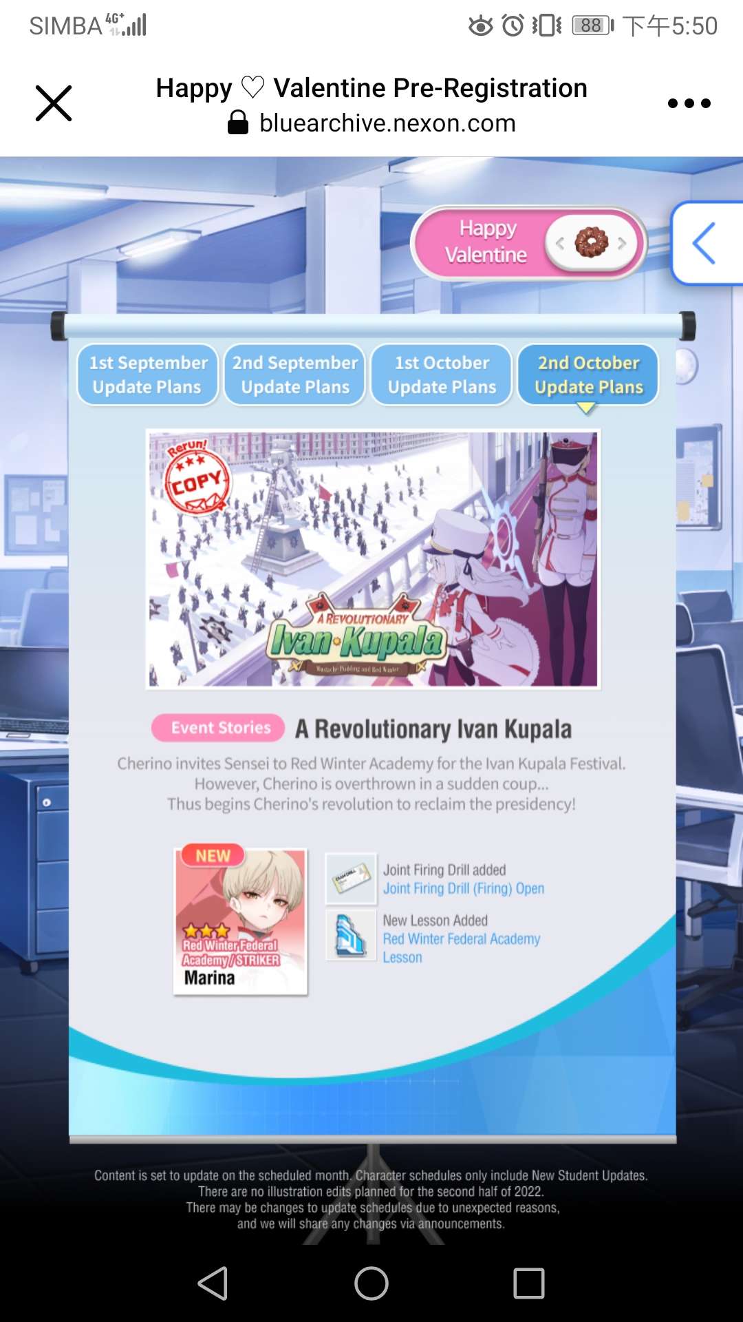 0115更新內容 大家好 港台時間1月15日上午10:00-12:00將進行維護更新,更新補償為普通抽卡卷*2+遊戲幣*200000 本次維護改為週四是特殊情況導致,將會補償所有玩家大禮,希望大家理解 1.抽卡包 a)專屬角色【埃琳娜+穎楓+雪梨+赫莉緹亞+芙芙】持續時間:1月13日更新 – 1月20日維護 b)專屬角色【星丘星光+伊迪亞】持續時間:12月30日更新 – 1月20日維護 c)援護角色【希耶爾】持續時間:1月13日更新 – 1月27日維護 d)三卡UP【法利西亞+卡米樂+珍妮】持續時間:1月13日更新 – 1月27日維護 e)材料UP【伊娃+小櫻+阿德琳+雪兒+萊拉+利雅娜】持續時間:1月13日更新 – 1月27日維護 2.新一期【累計儲值】:持續時間1月13日更新 – 1月20日維護 a)本次累計儲值採用【普通】類型 3.新一期【活躍任務+活躍獎勵】:持續時間1月13日更新 – 1月20日維護 a)专属活动任务替换为【普通】升星任务 b)活跃奖励替换为【火】属性【天界石】 4.新一期【活動boss+公會boss】:持續時間1月13日更新 – 1月20日維護 a)Boss角色為【薇爾莉特】,活動boss僅限【森】屬性參戰 b)周活動boss獎勵裝備為【主武器】,每4周轮换一次,顺序为【主武器】-【副武器】-【下著】-【上衣】 5.新一期【祈願活動】:持續時間12月30日更新 – 1月20日維護 a)祈願所需“星光幣”可以每日登錄領取,掛機掉落,以及商城購買 b)本次復刻以下皮膚,【小枫 – 私密和服】【艾丽卡 - 扭扭奴仆】【阿兹莎 – 圖元女友】【艾洛依 - 放課後的教師】【清水由奈 - 忍不住了】【奥西里斯 - 龙游潜水】【萨莱曼达 - 藤蔓】 c)角色:【愛琳 - 水】【愛琳 – 火】【愛琳 – 森】 6.新一期【姬速消除】:持續時間:1月13日更新 – 1月27日維護 a)活動期間挂機和完成每日任務最高檔獎勵可以獲得【姬速券】,也可以在商店購買 b)【消除幣】可以用來兌換各類遊戲道具:頭像框【萬事大吉】,售價【姬速兌換幣】*2000,頭像框【聖誕禮物】,售價【姬速兌換幣】*2000 c)復刻皮膚:【卡莎 – 鬱金香飄散】,售價【姬速兌換幣】*1000,【奧西里斯 – 魅惑魔龍】,售價【姬速兌換幣】*1500 d)復刻角色:【葵月】【妮娜】【艾瑞爾】【彌思塔】【艾麗婭】【德麗莎】,限購1次,【五星狗量*1】分三色,每個顔色總計限購3個,價格爲【姬速兌換幣】*25 e)其他:【兩小時掛機金幣*5】,每日限購6個,售價【姬速兌換幣】*40,【兩小時掛機經驗*5】,每日限購6個,售價【姬速兌換幣】*40 7.bug和其他小功能 a)原平台活動【頭像框 – 聖誕禮物】加入【姬速消除商店】,使用姬速幣*2000進行兌換 b)關閉活動:主線掛機掉落卡牌經驗、金幣增加100%,掛機、每日副本、迷宮、競技場挑戰活動中,【聖誕禮盒】取消掉落