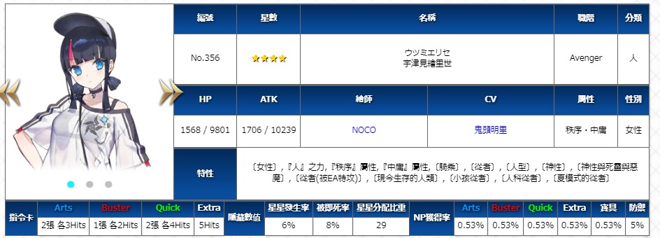 技能3主要是打從者特攻,繪里世本身吸星率也沒產星,比較難打爆擊