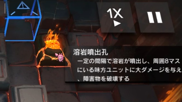 在地圖各處分布的岩漿口,岩漿口周圍8格會定時噴出岩漿對我方造成傷害,還有契約會強化這個傷害
