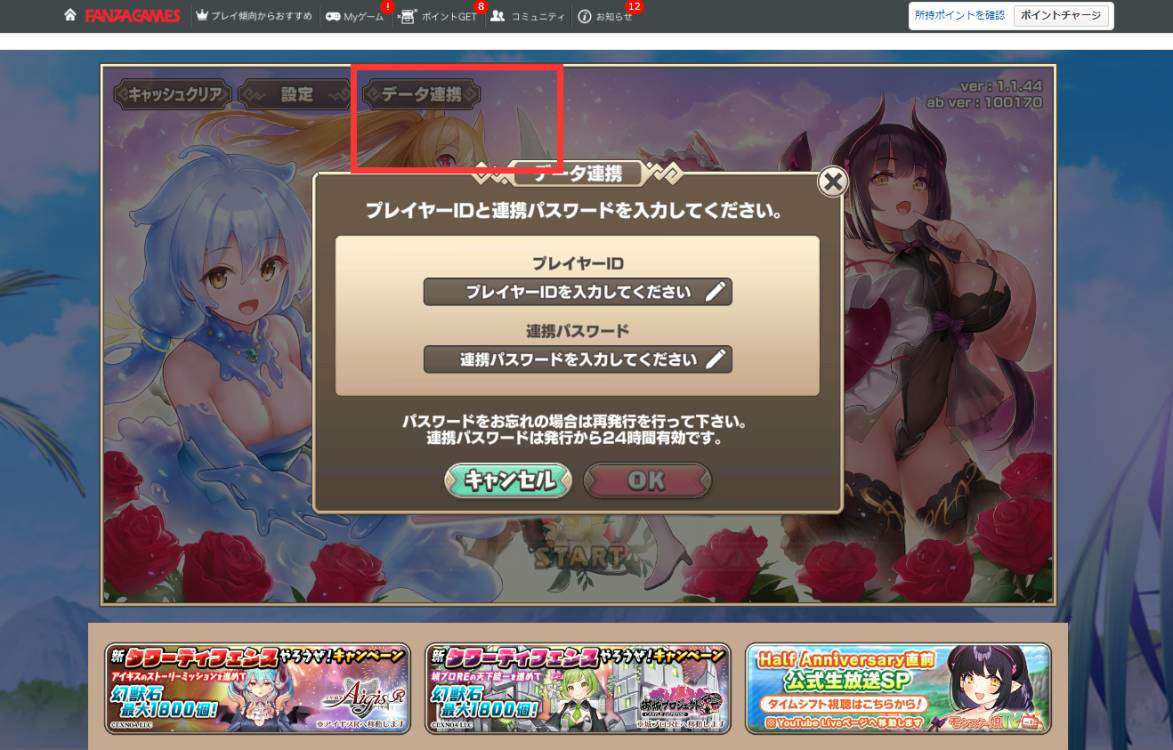 以下为dmm端发行连携码,在qooapp下载的游戏中接收连携码的操作。