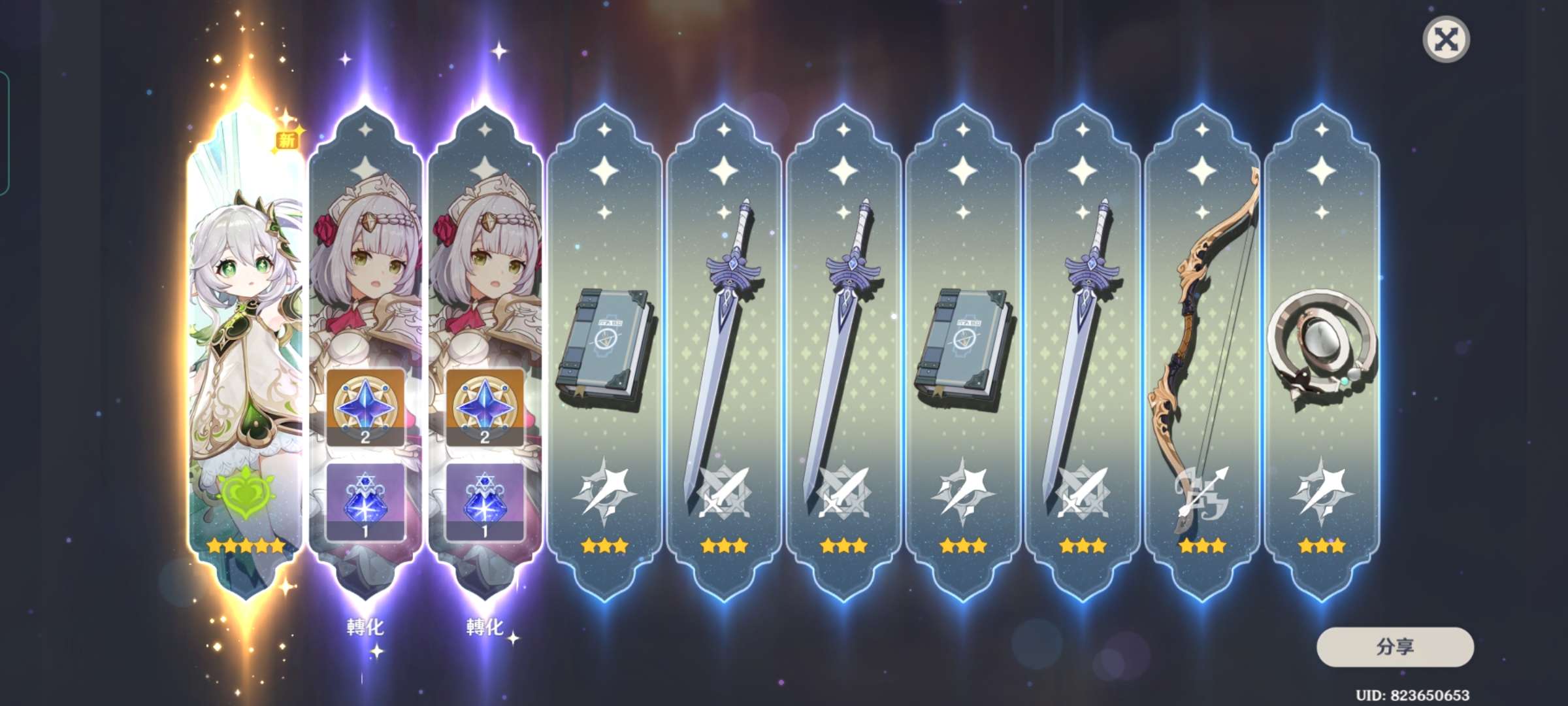 我只有38連然後第30連出來了(太吃驚所以不知道該怎麼辦)經過單抽七七那次我覺得原神他對我好棒😭希望大家可以抽到💗