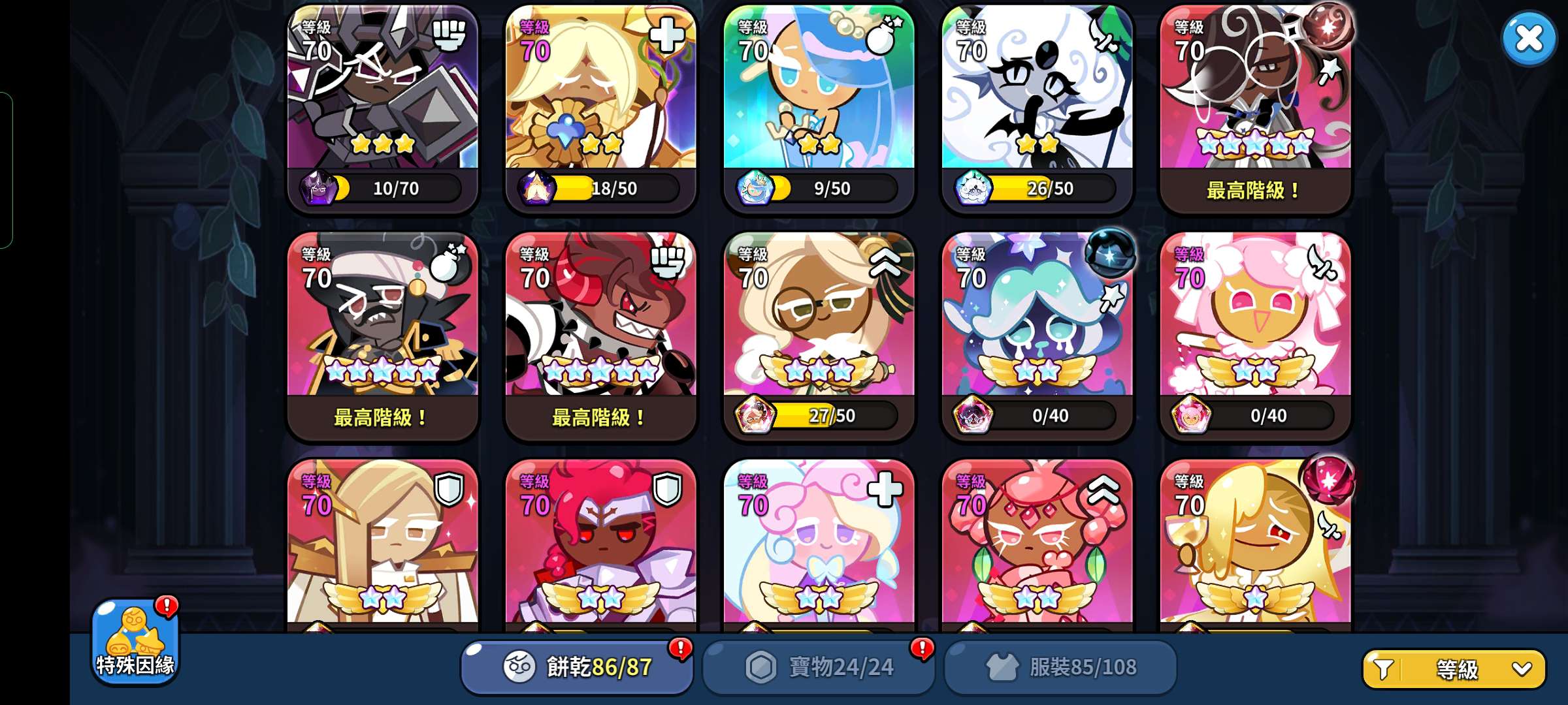 迪士尼全齐,bts6饼15皮肤,竞技场每赛季稳大二,守卫之战稳大三,公会战能打6.5亿伤害,该练的饼都练了,有些饼已经技能70,但我从神殿上撤下了,有需要可以放回去,估价580,可小刀,谷歌注册的d社账号,只出d社账号(对这点有意见,请勿打扰