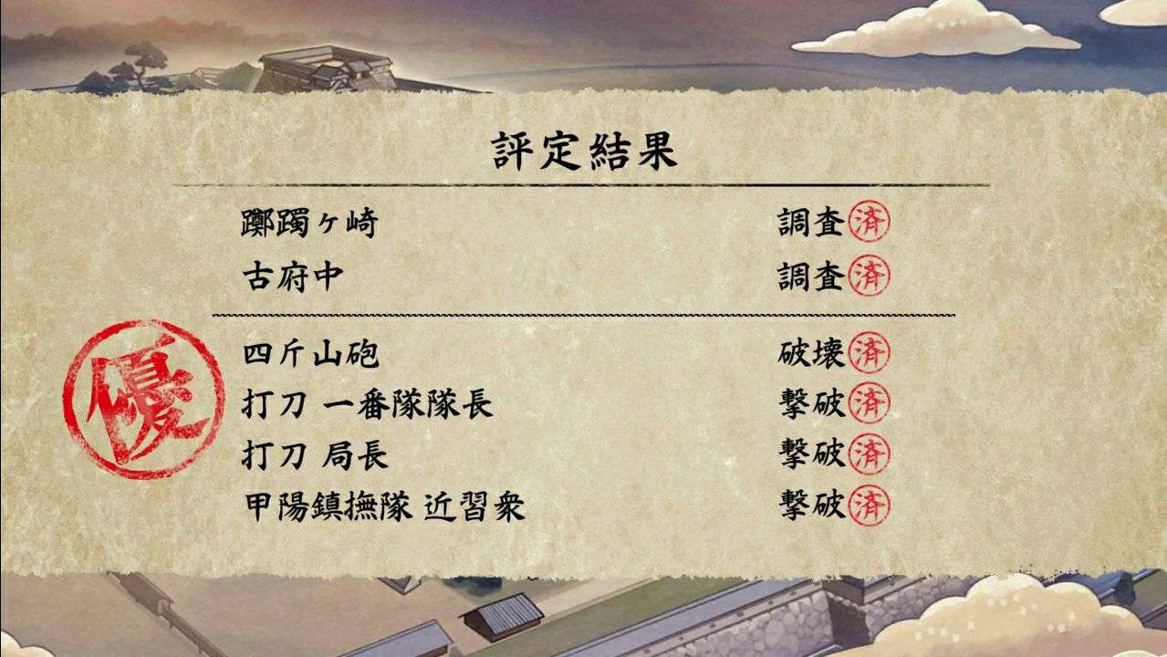 2. 击败甲府城本丸最终Boss并获得S或者A的评分
