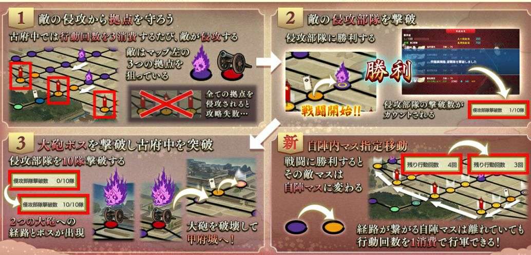 -在出阵的过程中,如果在敌人的点位和进攻敌人的点位获得胜利,这个点位会变成自阵点位(橙色的点)。