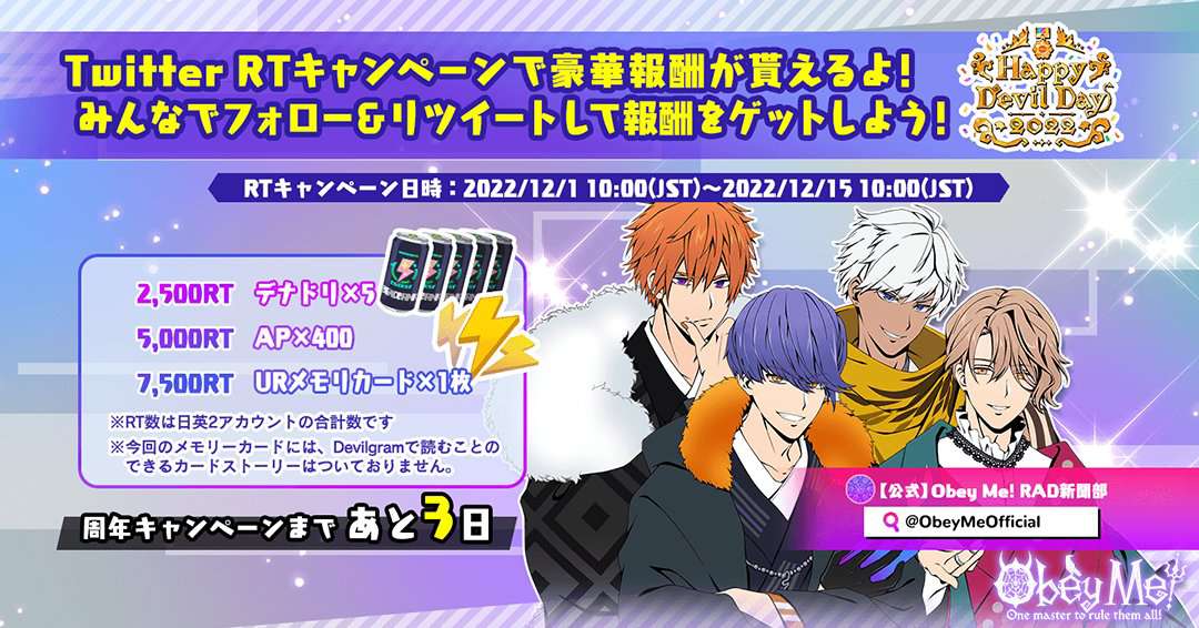 推上有转发活动,目前7500已达成,冲1w5可得到角色特别留言【ummm……以前白送的东西,拿来加档,ntt真是没有一天不用被骂