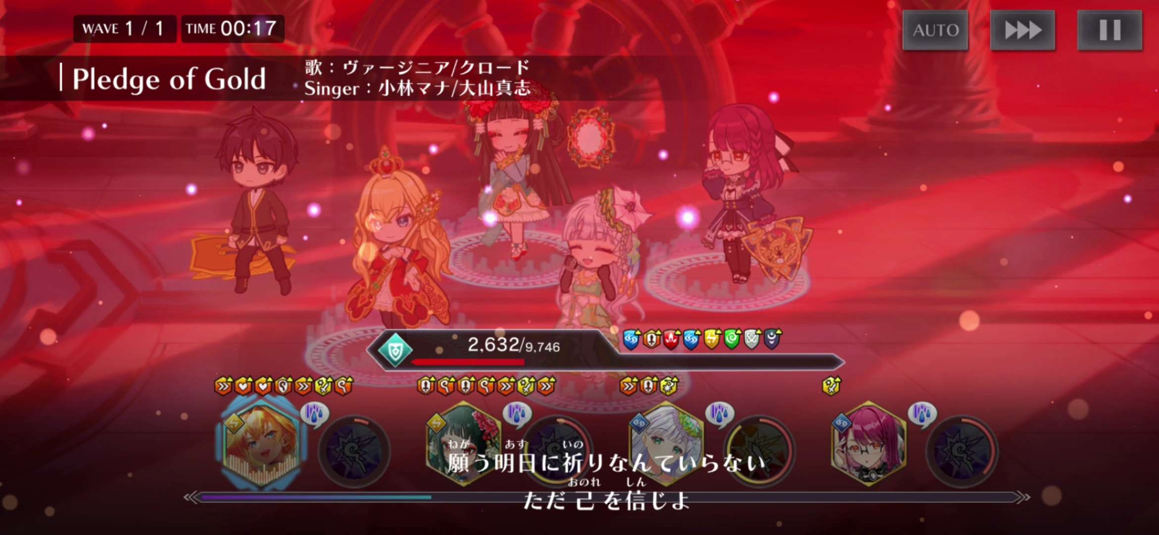 EXTRA關參考用隊伍,這個隊伍人權度不高,但因為主副肖像畫大都不到2突,boss最後殘不到1%血要接關還蠻常發生的;除了要看你自己的卡池多深,需要手動操作減少殘血機率,在真正上場前請先模擬戰幾場掌握放招時機,同時看看會不會殘太多血。