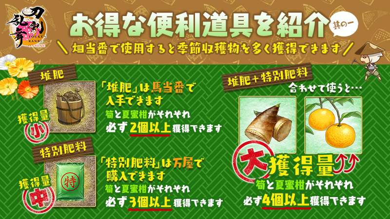 可于马当番取得,在烟当番中使用能增加作物的数量