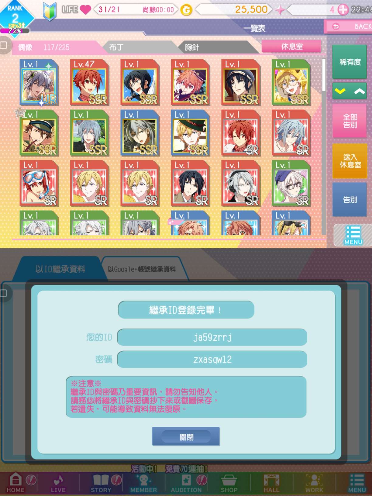 刷到心水的号子了,之前刷的都免费送出来吧,拿号麻烦回复一下,只有一排或者一排不满的都是之前刷的,没有抽最新的免费70连,后面刷的70连也有没抽完的,还有些最后一个新手任务没做,做完还能领20星石和一张十连票,剧情和歌都没打
