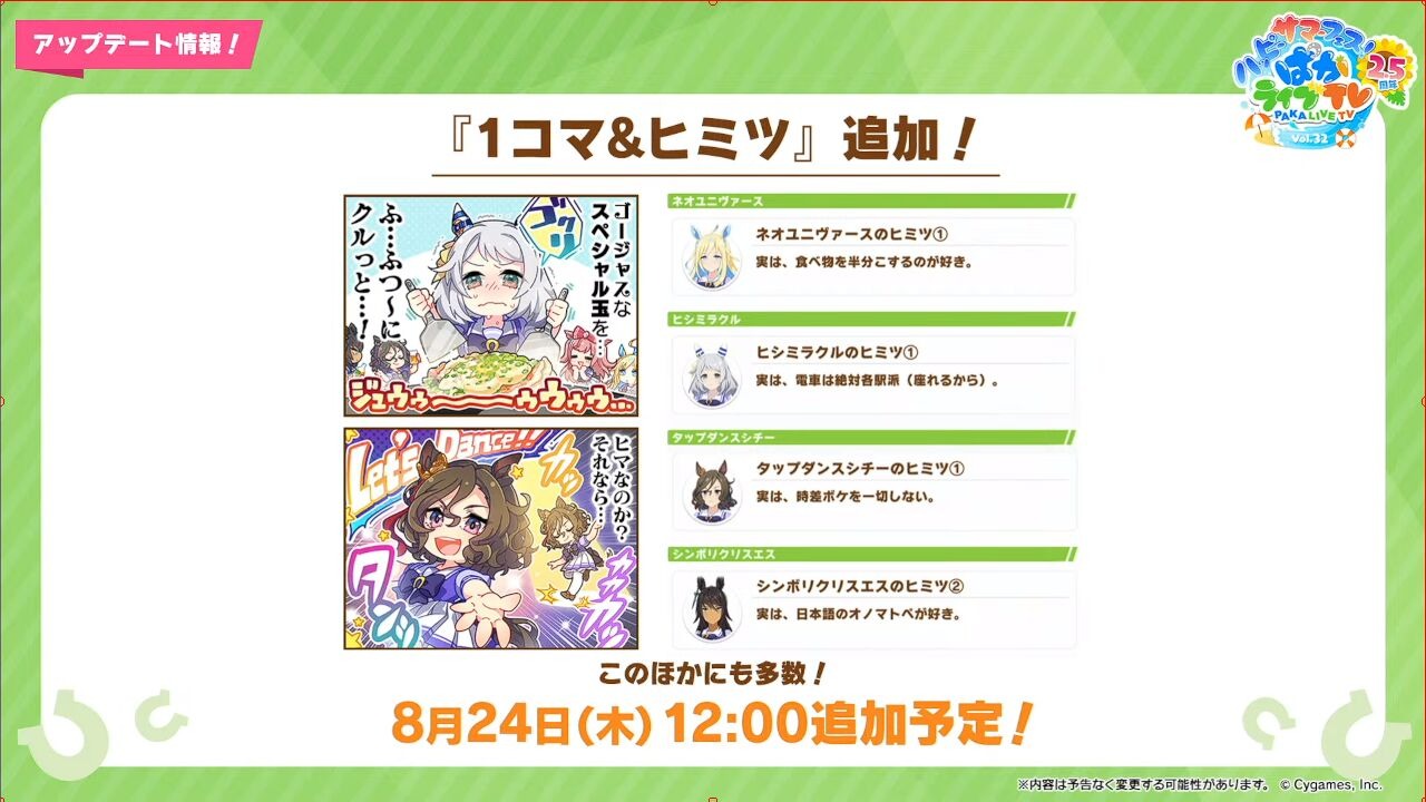 1格漫画以及马娘小秘密8月24日追加预告