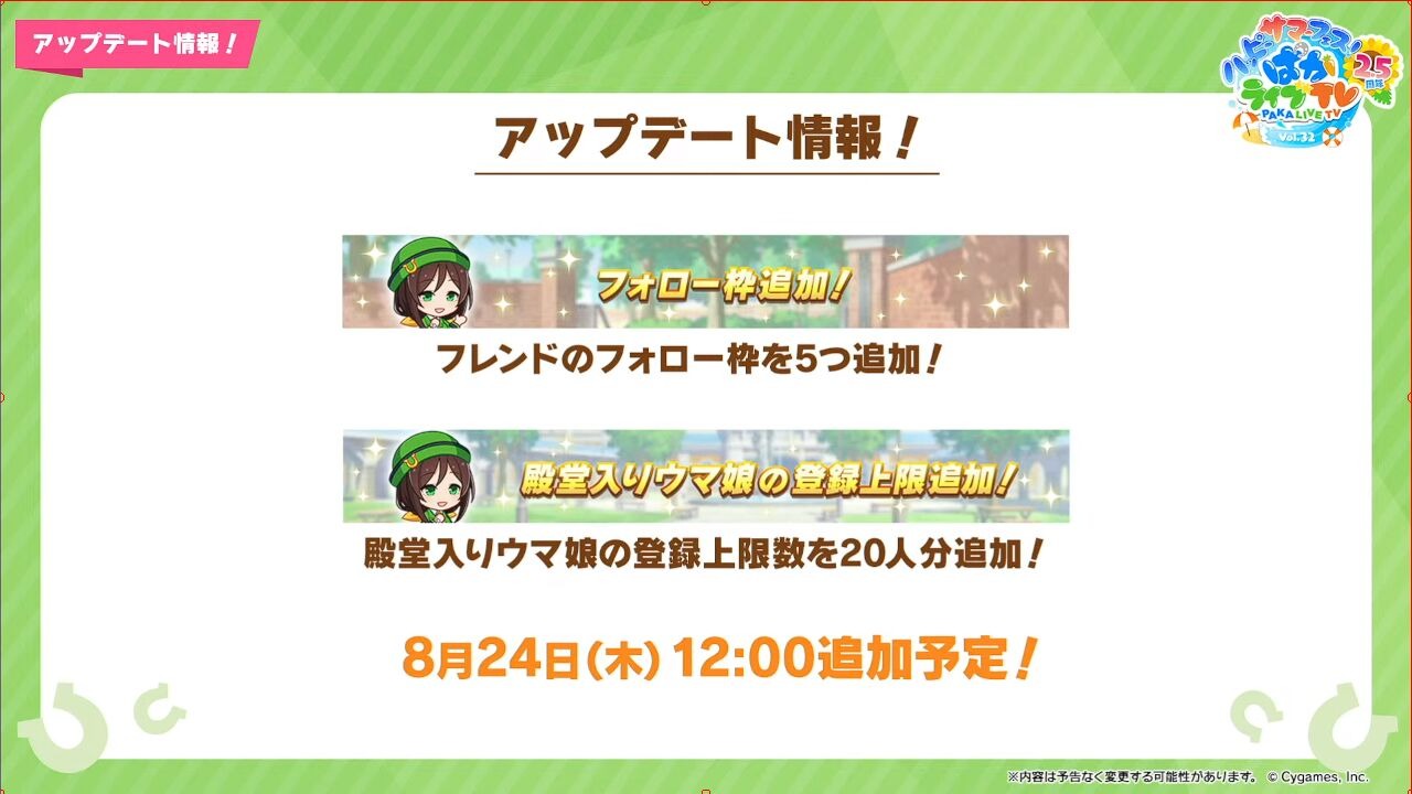 训练员关注人数&殿堂马娘数量上限8月24日开放预告
