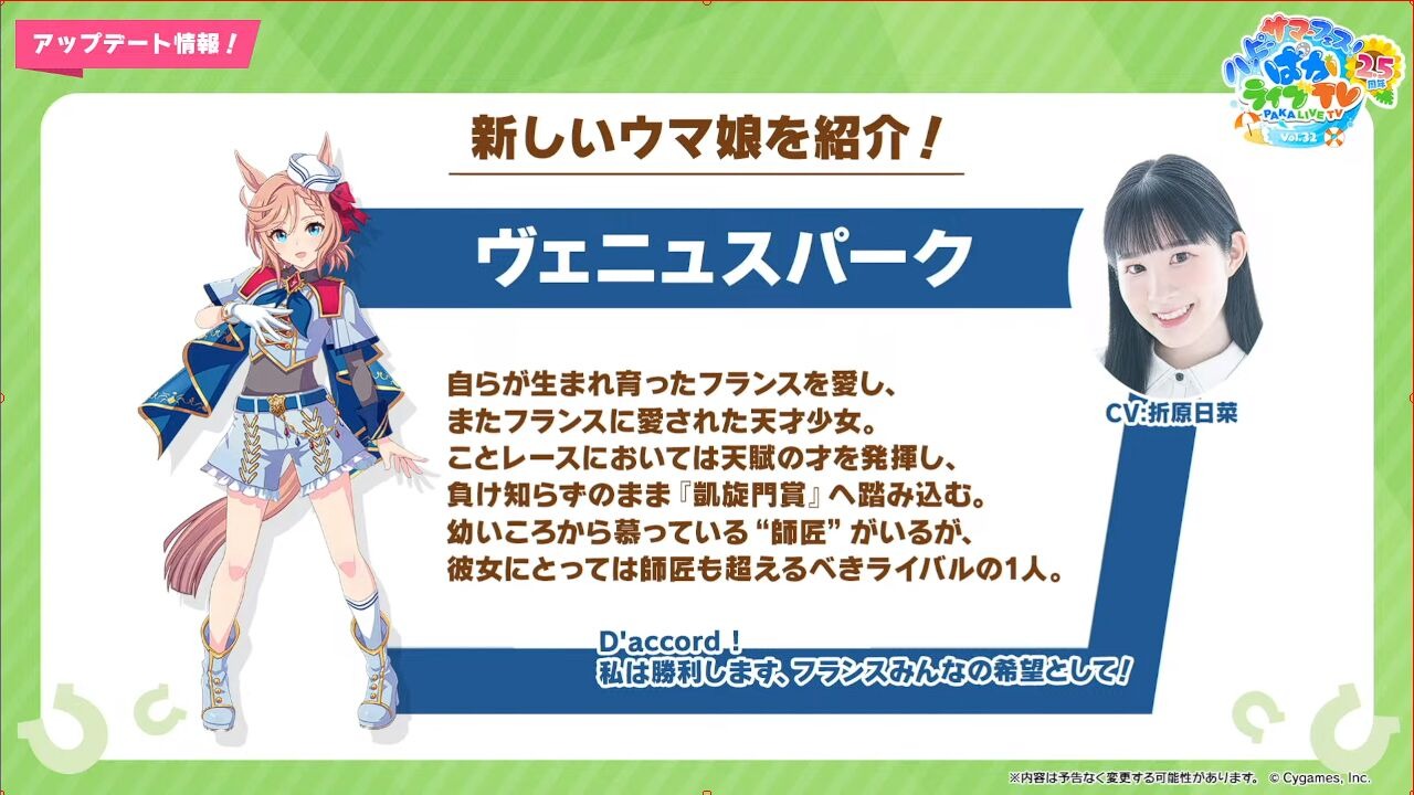 本次2.5周年生放送到此结束了,总的来说并没有太多的信息,也基本没有新马,唯一一匹也是没有什么好概括的2胜马。
