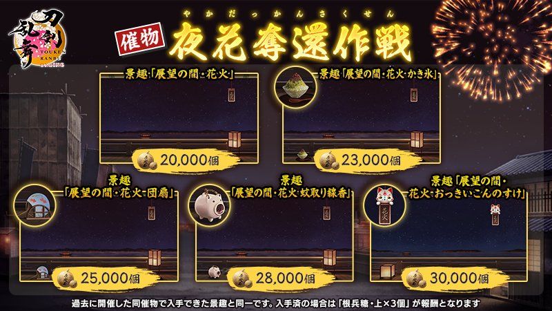 1.景趣「展望之间.花火 」(20000个花火玉)