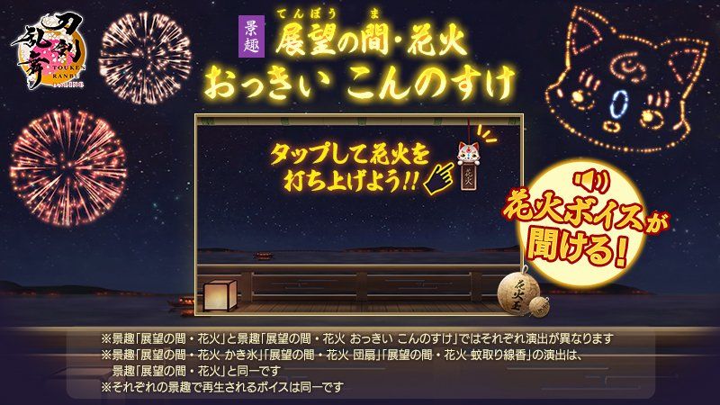 5.景趣「展望の間・花火 おっきい こんのすけ」(30000个花火玉)