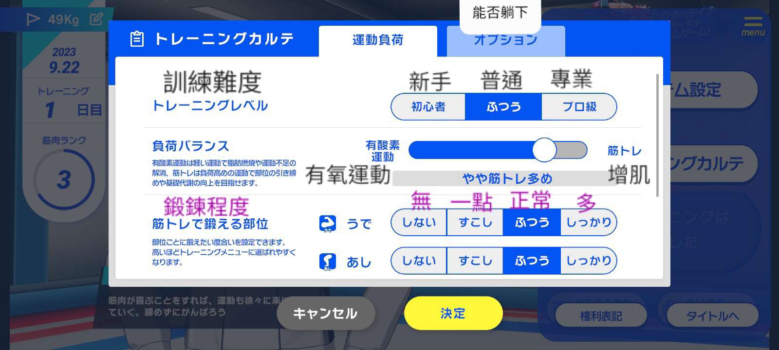 第一個是音量設定,第二個是訓練設定