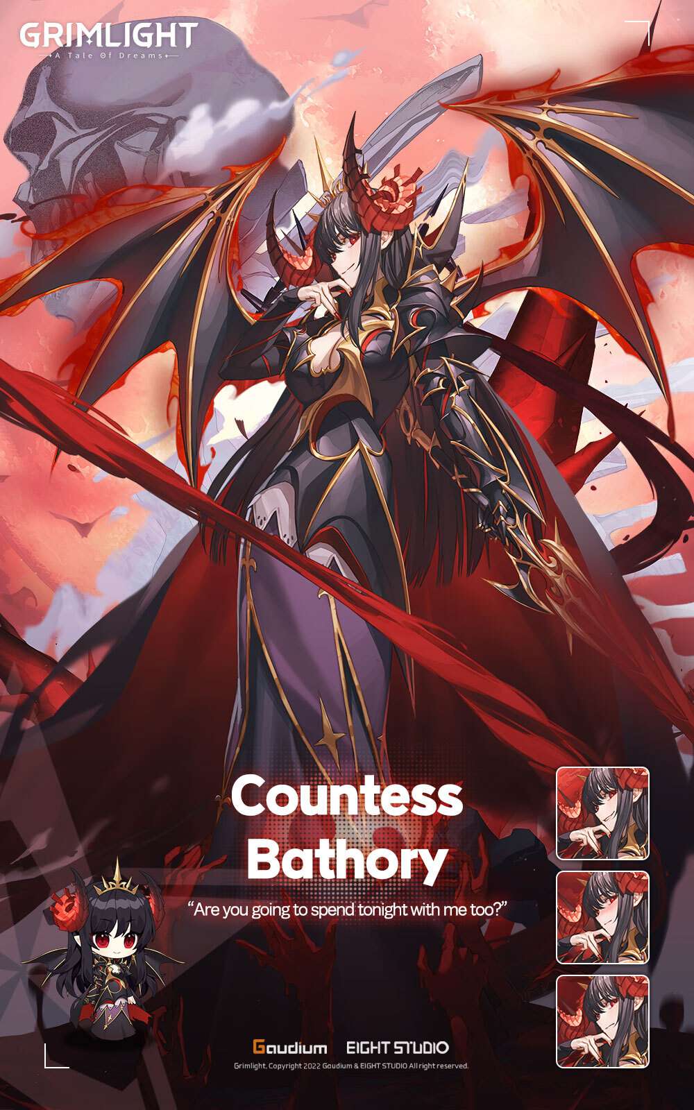 **Burning Desire:** Every time an Ally dies, Bathory heals 20% HP and gains +20% ATK for 30 seconds. (Max 5 Stacks)