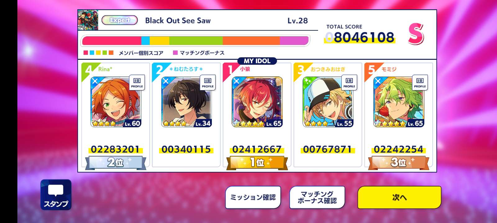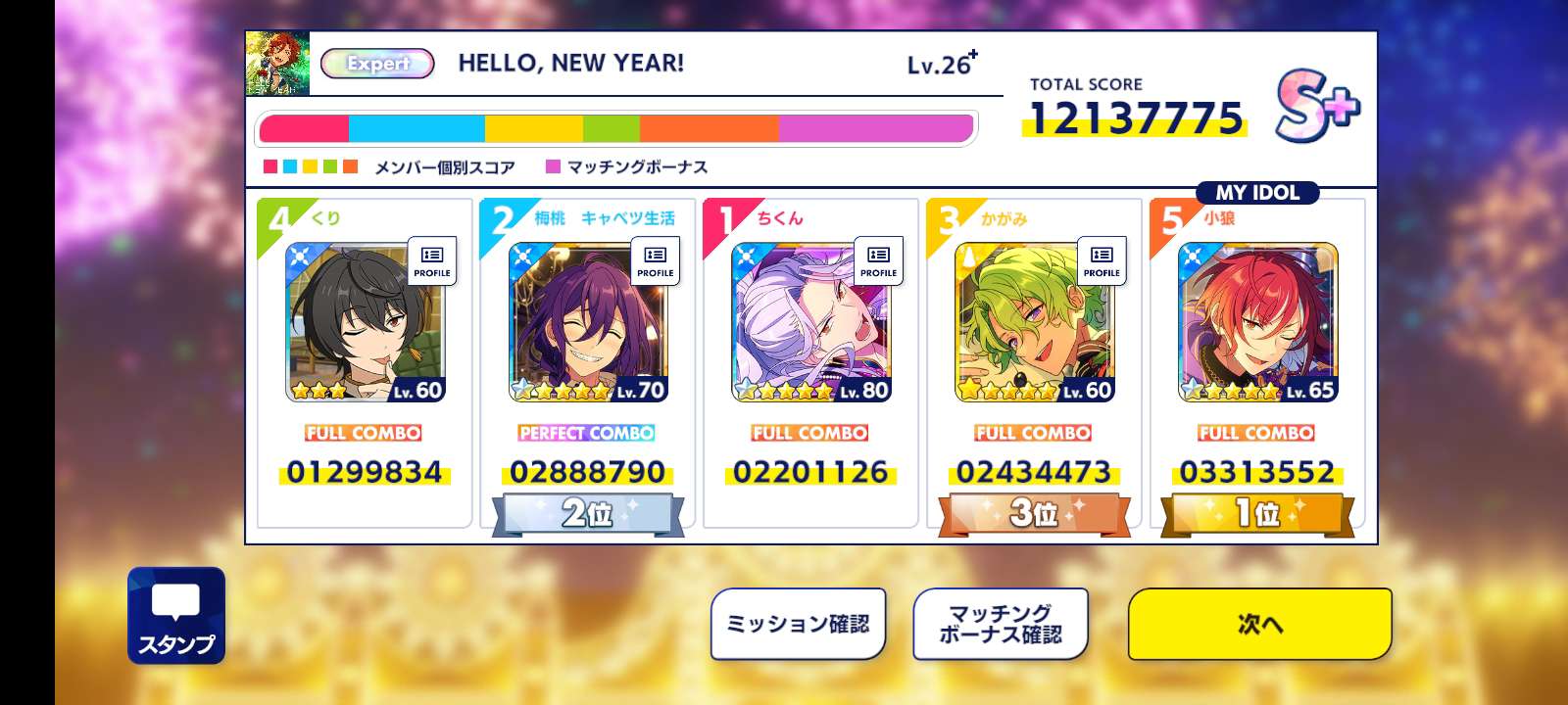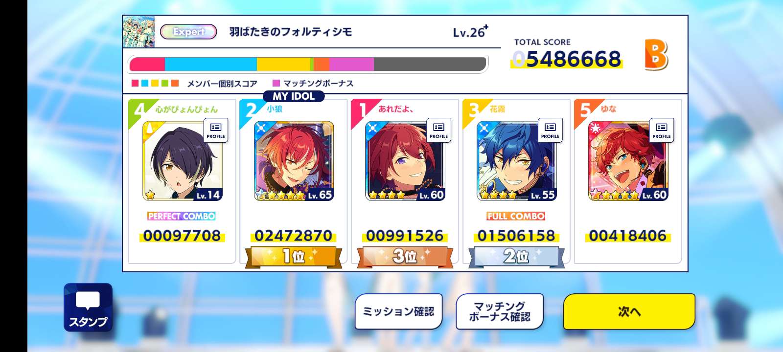 小狼ฅ^•ﻌ•^ฅ 2024-03-05 23:45 筆記(197) 今天打的分數,還不錯️️️️️️,我又打到第一名🤣🤣🤣🤣🤣🤣,我居然抽到5星的天祥院英智,來發full combo吧️️️️️️,祝葵日向跟葵裕太生日快樂🥳🥳🥳🥳🥳🥳🥳 #偶像夢幻祭
