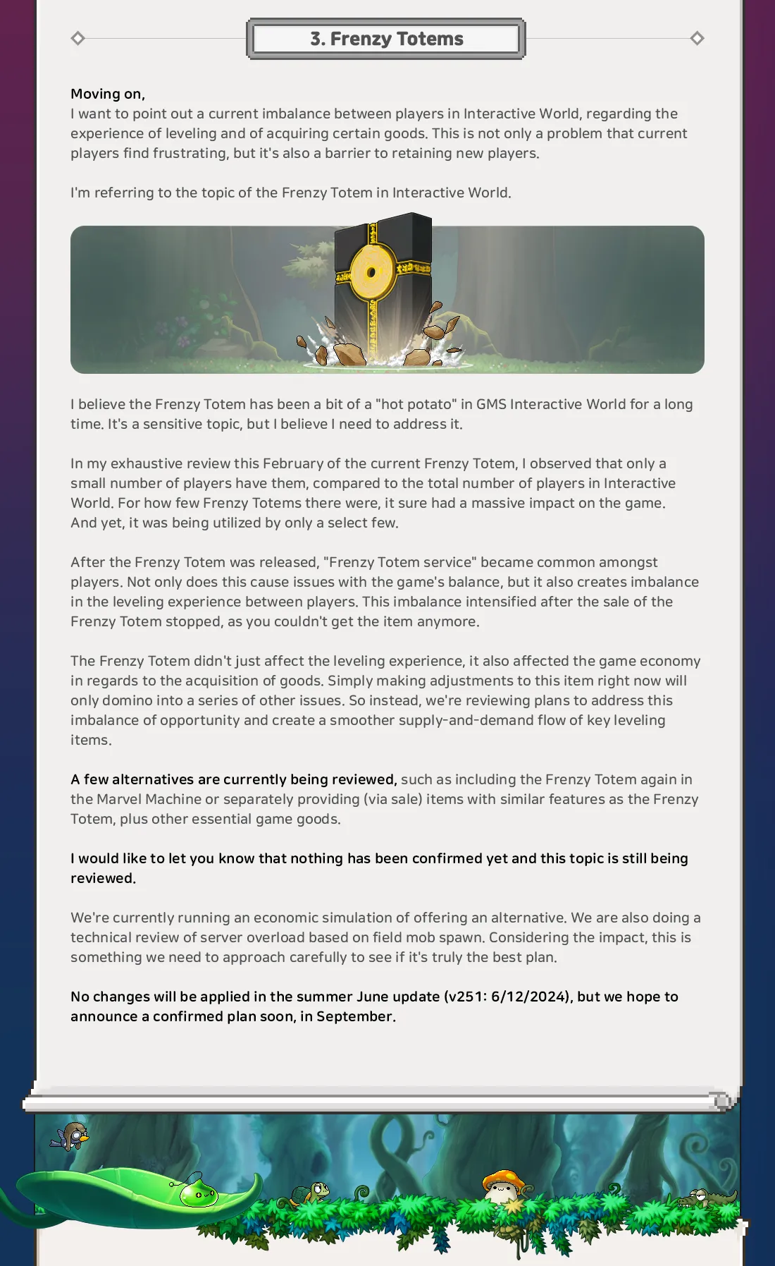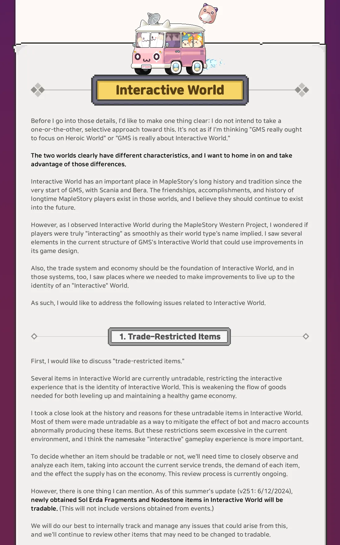 日前《新楓之谷》國際服玩家 Niru,由於此前向 NEXON 官方喊話國際服需要改變沒有得到回應,最終他為了達成承諾,依然選擇將角色升上 300 等。而正當所有玩家都認為 Niru 的抗議失敗時,國際服 NEXON 官方在昨日(29)正式回應,針對當初 Niru 與許多玩家不滿的幾點做出改善,讓 Niru 在實況中表示:「我贏了!」。