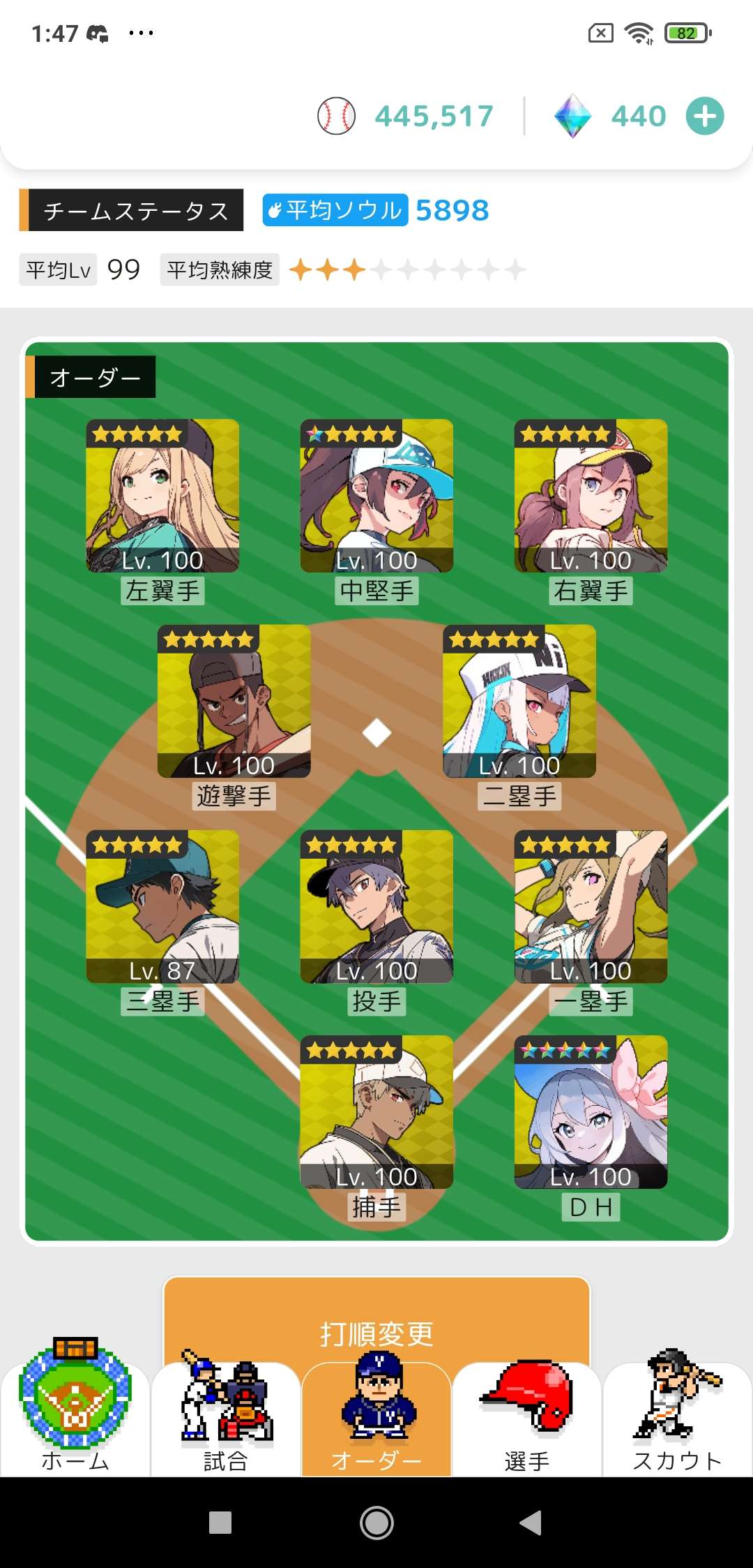 經過長達1個多月的奮鬥,終於達成隊伍全五星+通關13-25。接下來就由小弟我給出自己的建議 初期的時候建議先去抽一星期一次的必中五星,畢竟有五星,戰力真的差很多。然後試合竟然都打抽獎卷,先把戰力抽起來。極度不推薦去打素材,素材升級熟練度加的戰力太低了,抽獎卷抽卡的戰力遠大於素材。 中期差不多隊伍一半都是五星的時候,就可以去抽抽pick up。pick up的戰力真的很強 尤其是投手。抽到pick up投手,基本上後面沒有太大的壓力。 後期的話,缺什麼位置就去抽什麼。不然有一兩個四星在隊伍,戰力平均值被拉低太多了。等全五星之後,就可以考慮去打素材或者繼續打抽獎卷,去抽卡組出自己的夢幻隊伍。最後結論,試合一定要打抽獎卷,抽卡抽卡去抽卡