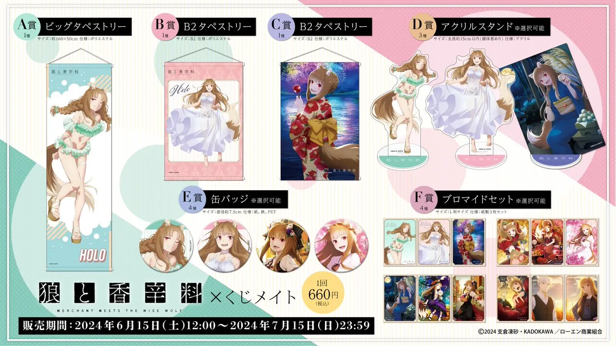 公佈了泳裝版本的赫蘿一番賞,可抽時間為2024年6月15日(六)~2024年7月15日(一),每抽的價格是660日圓(約新台幣135元)!