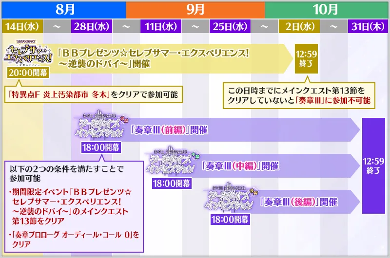 官方表示,「奏章 III」將於日本時間 2024 年 8 月 28 日(三)18:00 至 10 月 31 日(四)12:59 的期限內開放,由前篇、中篇、後篇三部所構成。