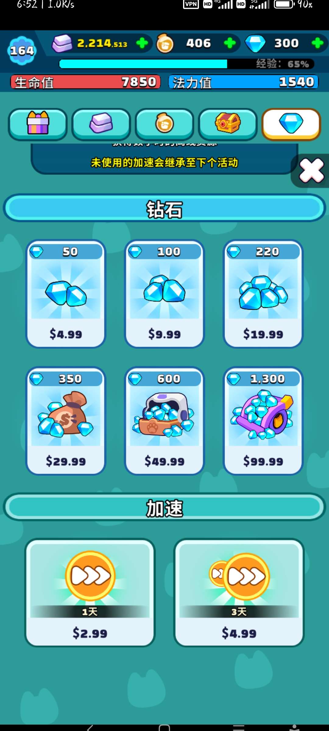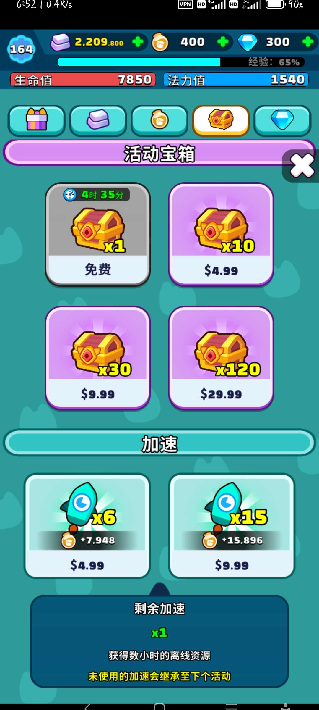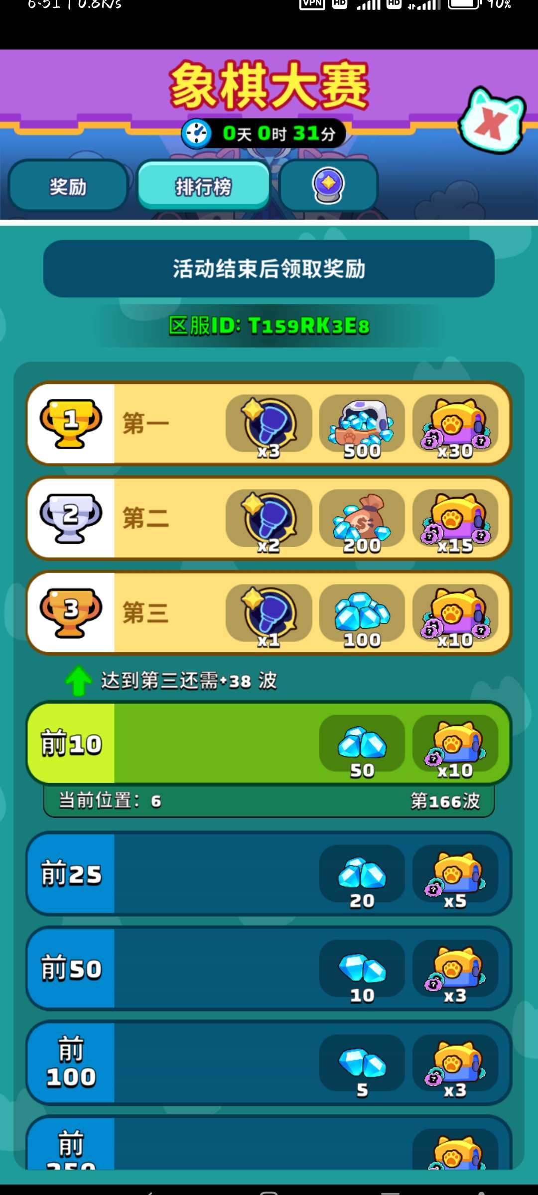 以上是活动商店,免费宝箱5小时可以领一次,其他全部需要氪金!活动人物打过50关给2个碎片,我无氪目前最高记录166关,看排名那儿的提示第三也只打到了204,每次活动最多打进前十,就只给钻石和角色箱(不包含活动角色碎片)