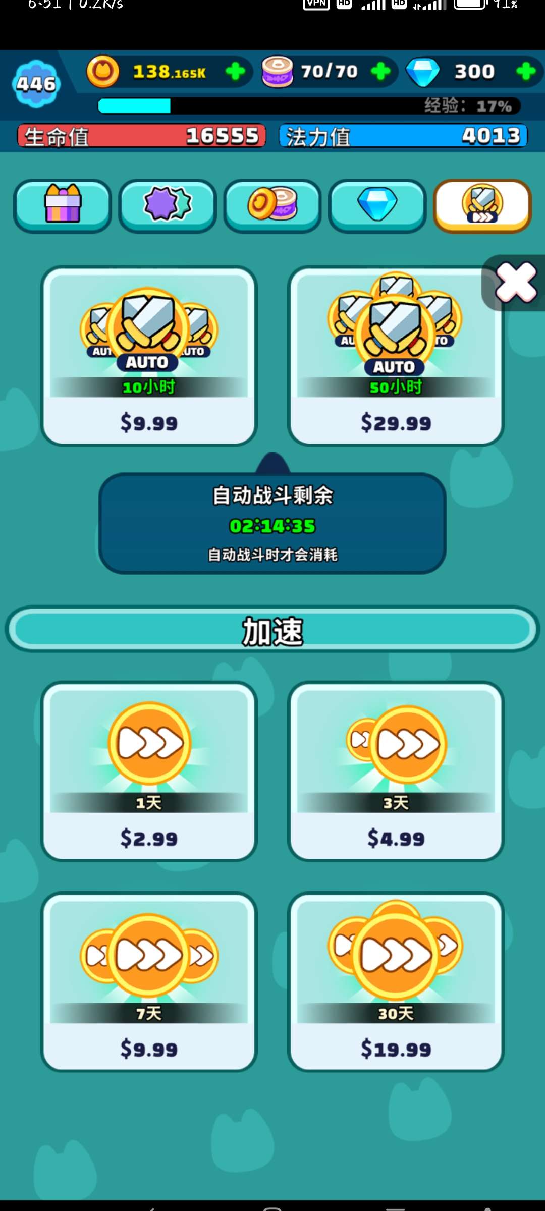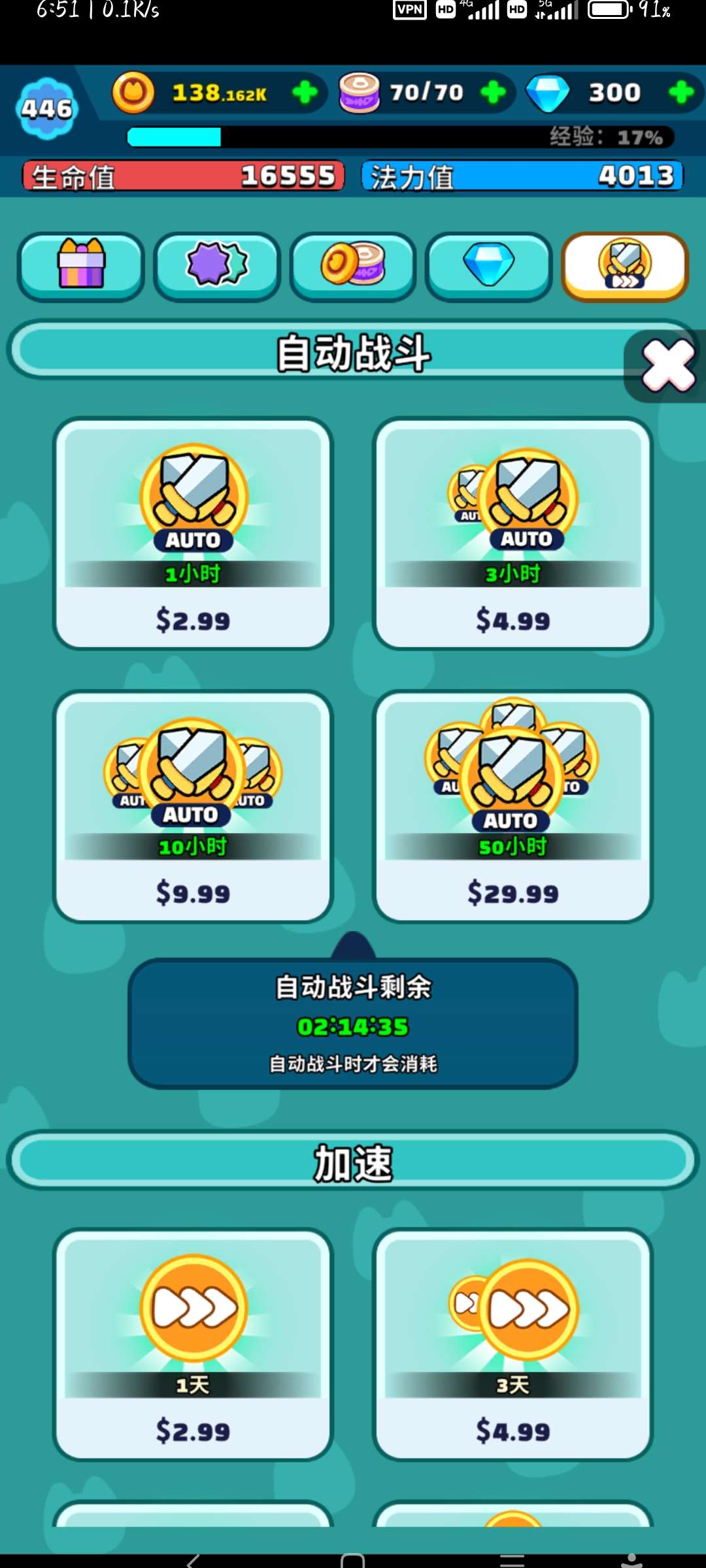 我在挂机能打得过后就不推主线了,目前就用点击助手挂罐头和钱,打算做新手村剑圣。