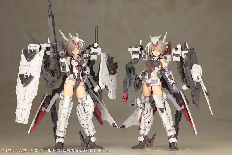 機甲少女「出雲」原型來自機械設計師柳瀨敬之設計的同名船艦型骨裝機兵,經由插畫家島田文金之手將其美少女化,延續姐妹機金剛的遮眼短髮設計,全身裝甲融合骨裝機兵原機的帥氣裝甲輪廓,並將重武裝、變形機構融合至可動素體中。