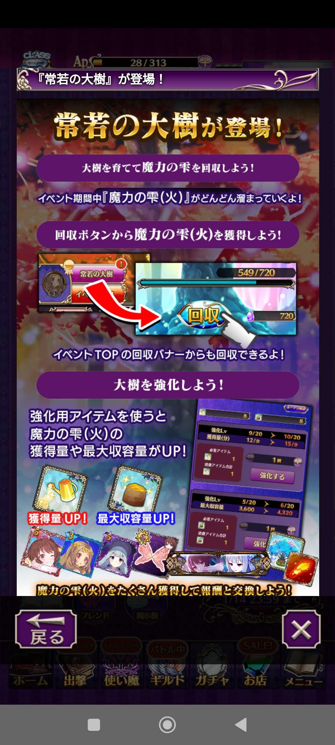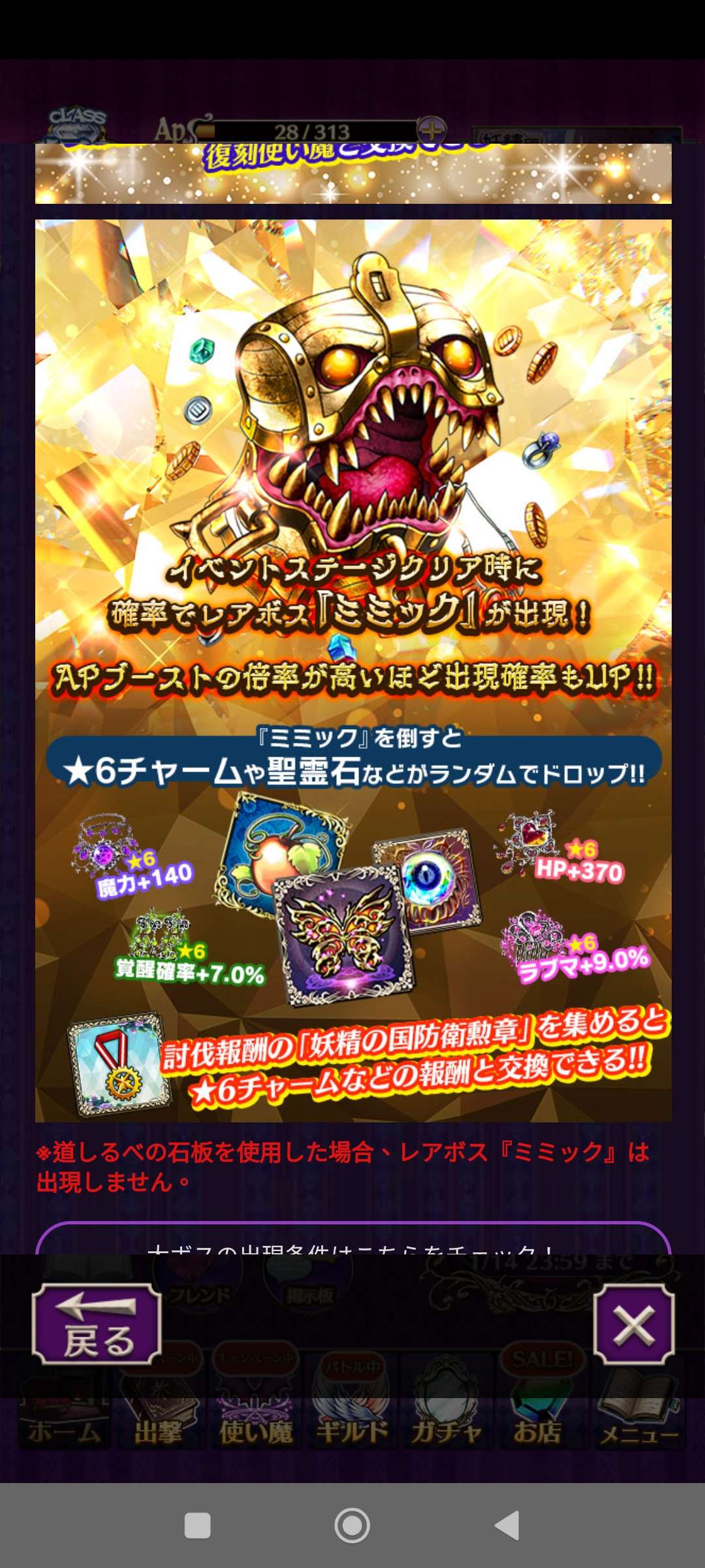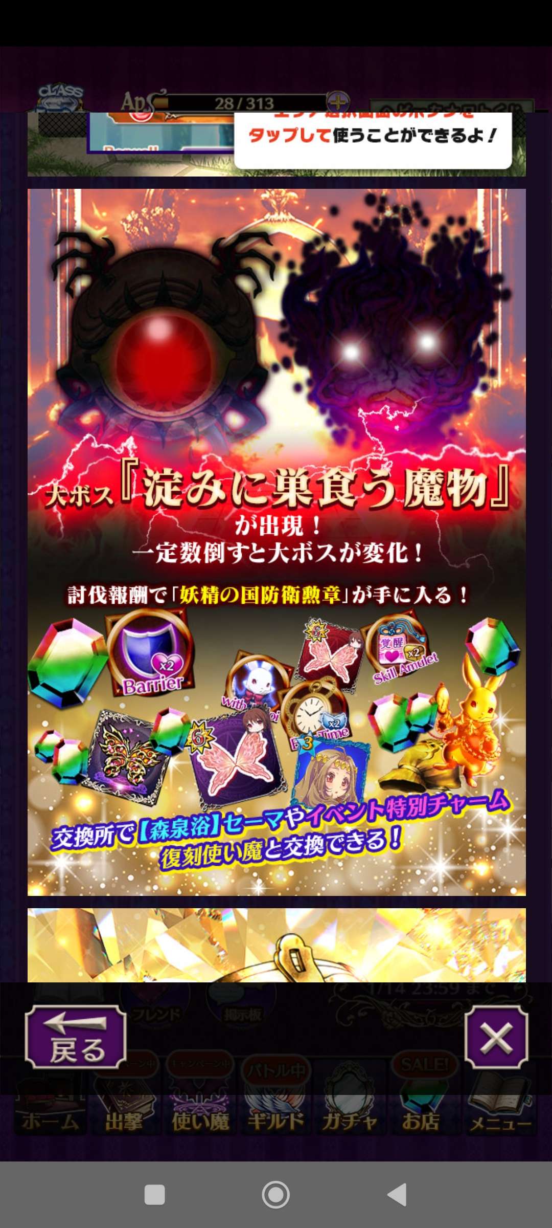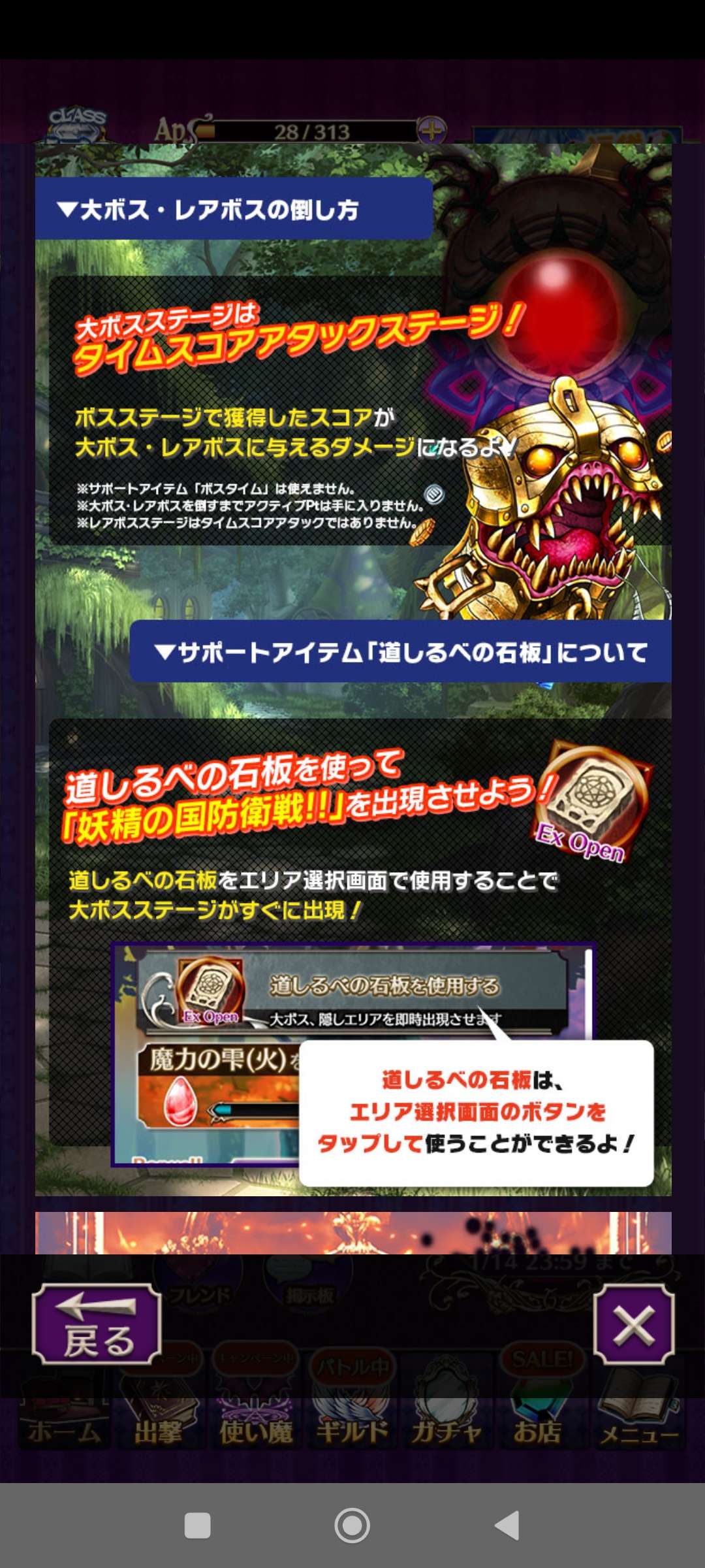 活動方式今回改為使用若干AP後,作為首領關卡的限時關會開放一回,擊倒首領後又重新計算AP。因為通過首領關卡的獎勵點數是普通關卡的幾倍,所以集中精力於首領關卡就對。另外,有特別關卡不定期開放,獎勵非常不俗。