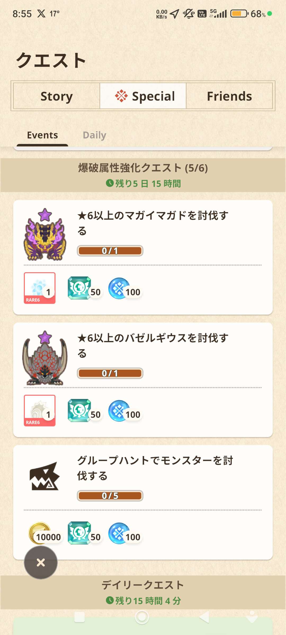 討伐☆6或以上怨虎/爆鱗龍各2隻