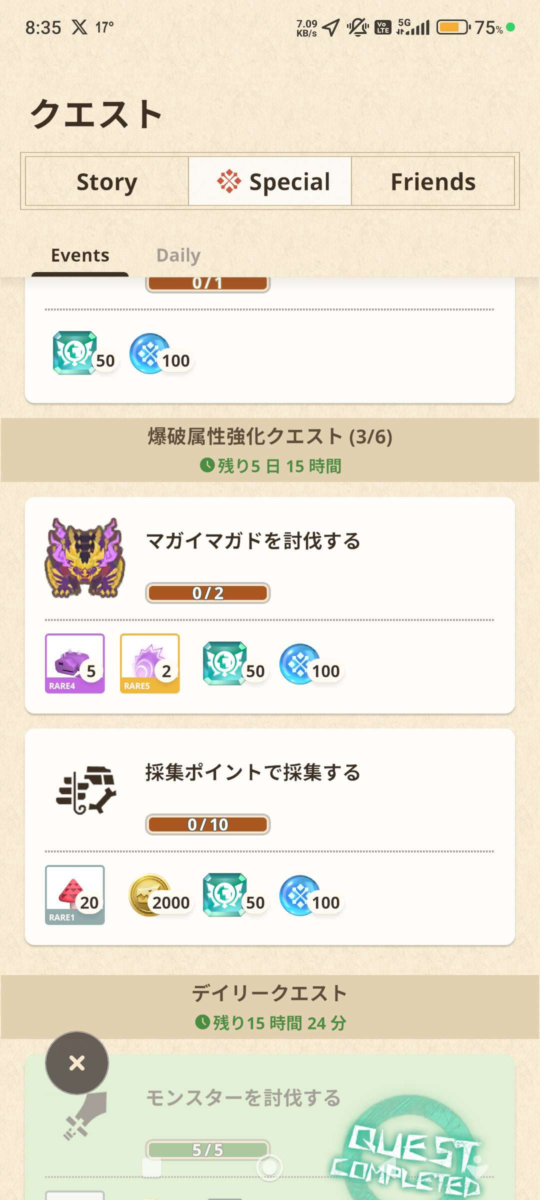 討伐☆5或以上魔物3隻