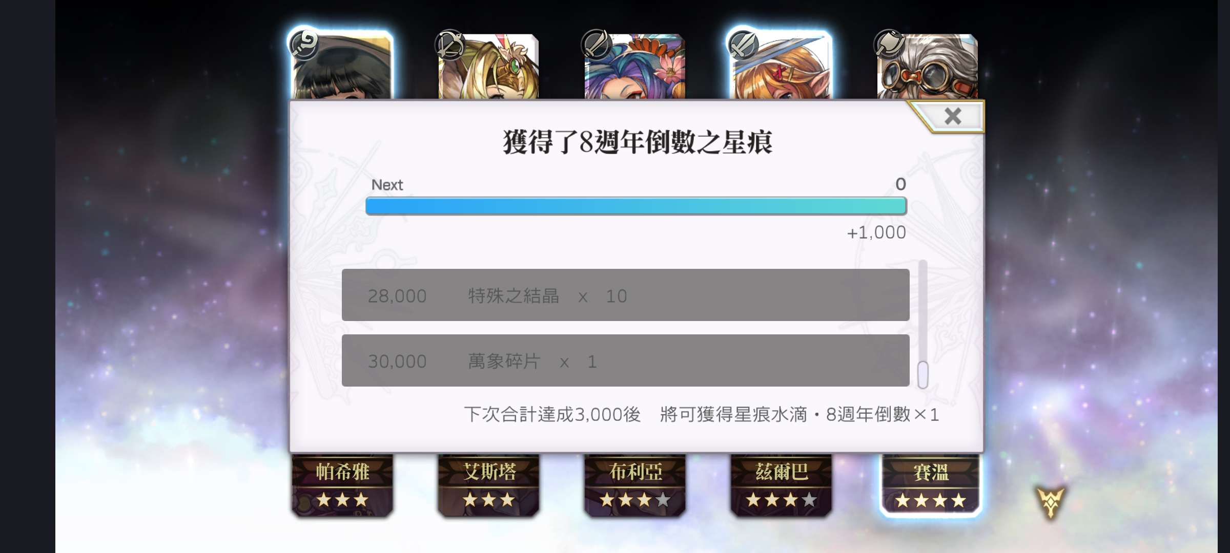 熱門話題 換一批 QooApp轉蛋 16836 聞姬起舞攻略 12968 聞姬起舞活動 5878 2020年度必玩 733 蒼霧殘響公告區 4801 聞姬起舞客訴區 4644 熱門遊戲 換一批 熱門筆記 更多 不徐不疾麻麻酱 0120更新內容 大家好 港台時間1月20日下午14:00-16:00將進行維護更新 更新補償為普通抽卡卷*2+遊戲幣*200000 1.抽卡包 a)專屬角色【曼玲+梶芽+阿斯特莉德+山花有希】持續時間:1月20日更新 – 1月27日維護 b)援護角色【希耶爾】持續時間:1月13日更新 – 1月27日維護 c)三卡UP【法利西亞+卡米樂+珍妮】持續時間:1月13日更新 – 1月27日維護 d)材料UP【伊娃+小櫻+阿德琳+雪兒+萊拉+利雅娜】持續時間:1月13日更新 – 1月27日維護 2.新一期【累計儲值】:持續時間1月20日更新 – 1月27日維護 a)本次累計儲值採用【普通】類型 3.新一期【活躍任務+活躍獎勵】:持續時間1月20日更新 – 1月27日維護 a)专属活动任务替换为【普通】升星任务 b)活跃奖励替换为【森】属性【天界石】 4.新一期【活動boss+公會boss】:持續時間1月20日更新 – 1月27日維護 a)Boss角色為【卡莎】,活動boss僅限【水】屬性參戰 b)周活動boss獎勵裝備為【主武器】,每4周轮换一次,顺序为【主武器】-【副武器】-【下著】-【上衣】 5.新一期【深淵pass】:持續時間1月20日更新 – 2月17日維護 a)新一期【深淵pass】持續時間:1月20日更新 - 2月17日維護 b)深淵商店中出售的橙色品質內衣由為【火】系(後續商店中每出售的內衣品質每兩期變更一次,順序為【水系】-【火系】-【森系】) c)1月20日更新後,新一期深淵活動開始(如果未開始的可以重啓遊戲一次),所有用護深淵徽章等級變更為1級,深淵掛機時間清零!(請各位在維護前領取完畢) d)深淵天賦技能和深淵英雄秘技全部等級清零,深淵關卡等級和關卡任務清零,深淵pass進度清零,深淵商店購買記錄清空 6.新一期【姬速消除】:持續時間:1月13日更新 – 1月27日維護 a)活動期間挂機和完成每日任務最高檔獎勵可以獲得【姬速券】,也可以在商店購買 b)【消除幣】可以用來兌換各類遊戲道具:頭像框【萬事大吉】,售價【姬速兌換幣】*2000,頭像框【聖誕禮物】,售價【姬速兌換幣】*2000 c)復刻皮膚:【卡莎 – 鬱金香飄散】,售價【姬速兌換幣】*1000,【奧西里斯 – 魅惑魔龍】,售價【姬速兌換幣】*1500 d)復刻角色:【葵月】【妮娜】【艾瑞爾】【彌思塔】【艾麗婭】【德麗莎】,限購1次,【五星狗量*1】分三色,每個顔色總計限購3個,價格爲【姬速兌換幣】*250 e)其他:【兩小時掛機金幣*5】,每日限購6個,售價【姬速兌換幣】*40,【兩小時掛機經驗*5】,每日限購6個,售價【姬速兌換幣】*40 朴致命 🎁兑换码(共4个)(有效期至:2026年02月28日) 《姜饼人王国》5周年倒数2天纪念好礼!: 【CRK5THANNIVERSARYC】 - 厚实体力果冻×200 - 闪亮脆饼面团×50 (有效期至:2026年02月28日) 《姜饼人王国》5周年倒数3天纪念好礼!: 【CRK5THANNIVERSARYT】 - 彩虹方块×1500 (有效期至:2026年02月28日) 《姜饼人王国》5周年倒数4天纪念好礼!: 【CRK5THANNIVERSARYI】 - 宿命饼干模具×5 (有效期至:2026年02月28日) 《姜饼人王国》5周年倒数5天纪念好礼!: 【CRK5THANNIVERSARYW】 - 巧克力粉片×1000 (有效期至:2026年02月28日) 兑换链接:https://coupon.devplay.com/coupon/ck/zh-Hant CandyEater 1/13 Xunxiang 除或者幻