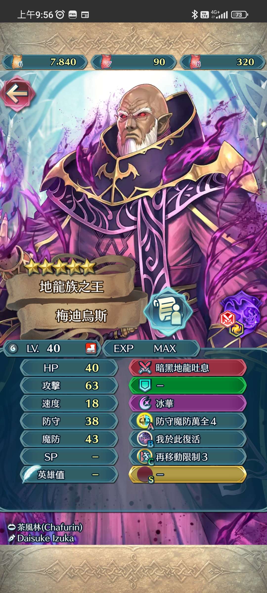 梅迪烏斯-無步龍,神階英雄。梅伯尚未開鍛,還有進步空間,而且神階英雄直接影響飛空城分數,所以未有抽到的朋友絕對值得考慮。梅伯本身有非戰鬥損傷免疫,條件齊全之下,耐打程度屬優秀之列。建議承繼最新的龍專屬奧義,令梅伯的攻防更上一層樓