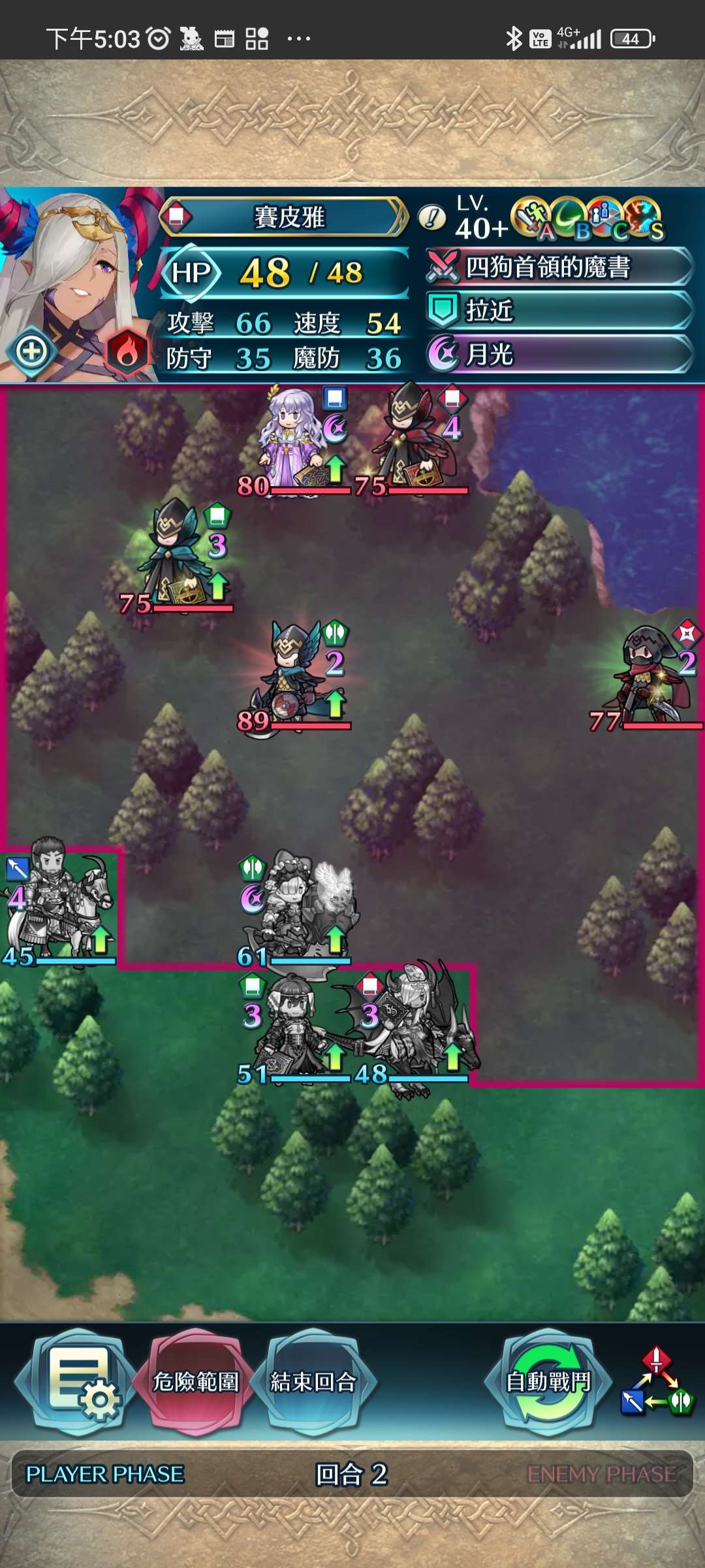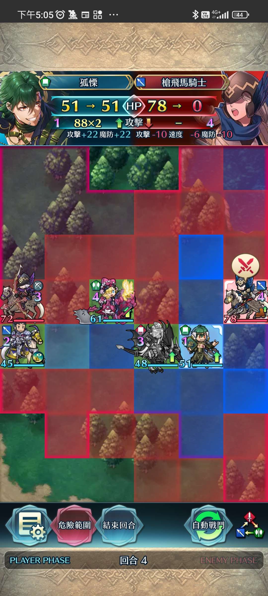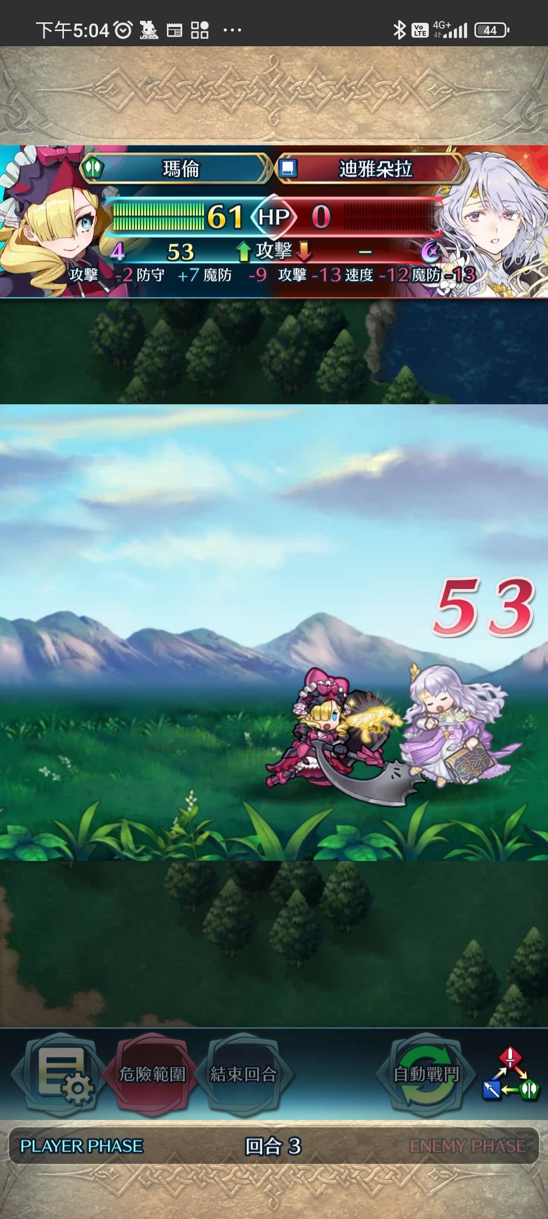 第四回合,賽皮雅殺步斧,孤慄殺飛槍,莫布殺飛弓。敵全滅,完。