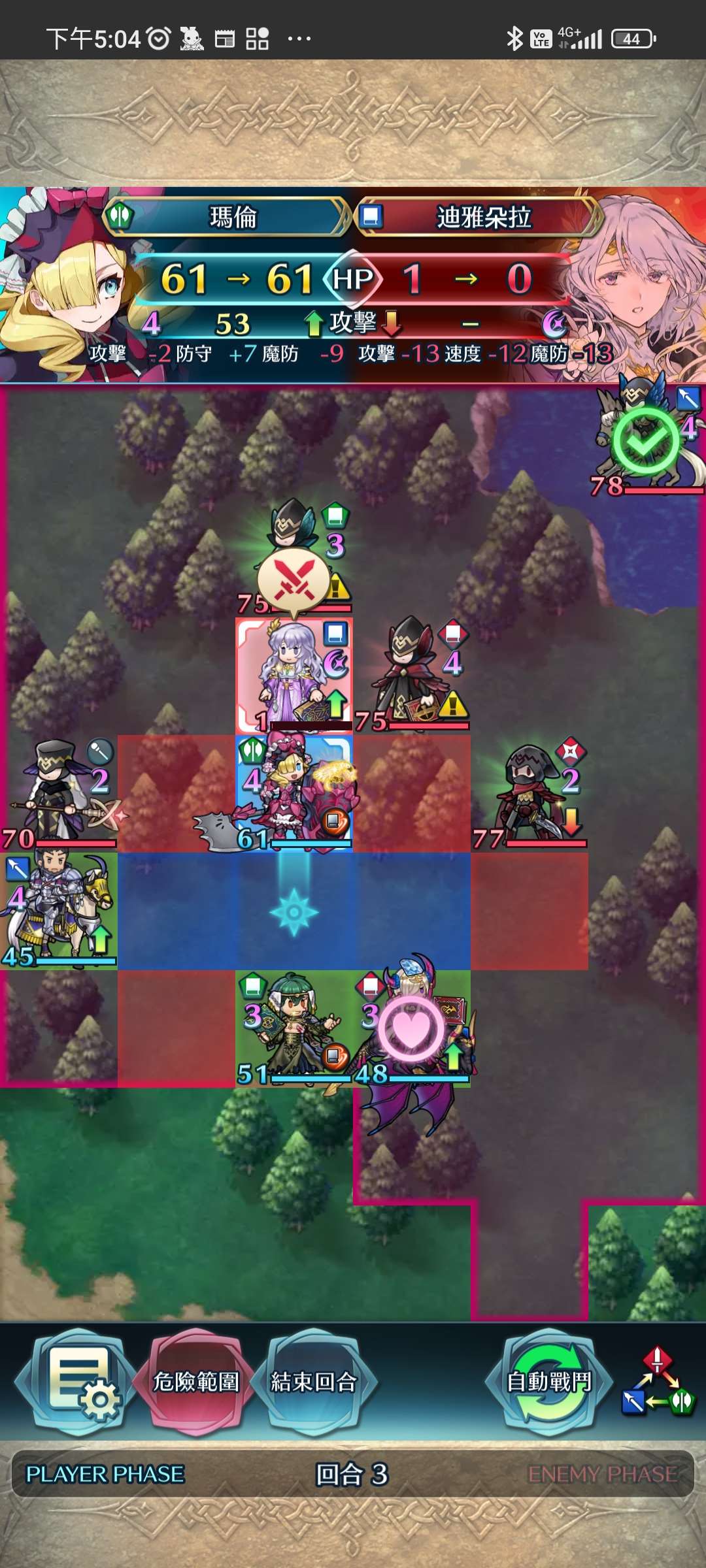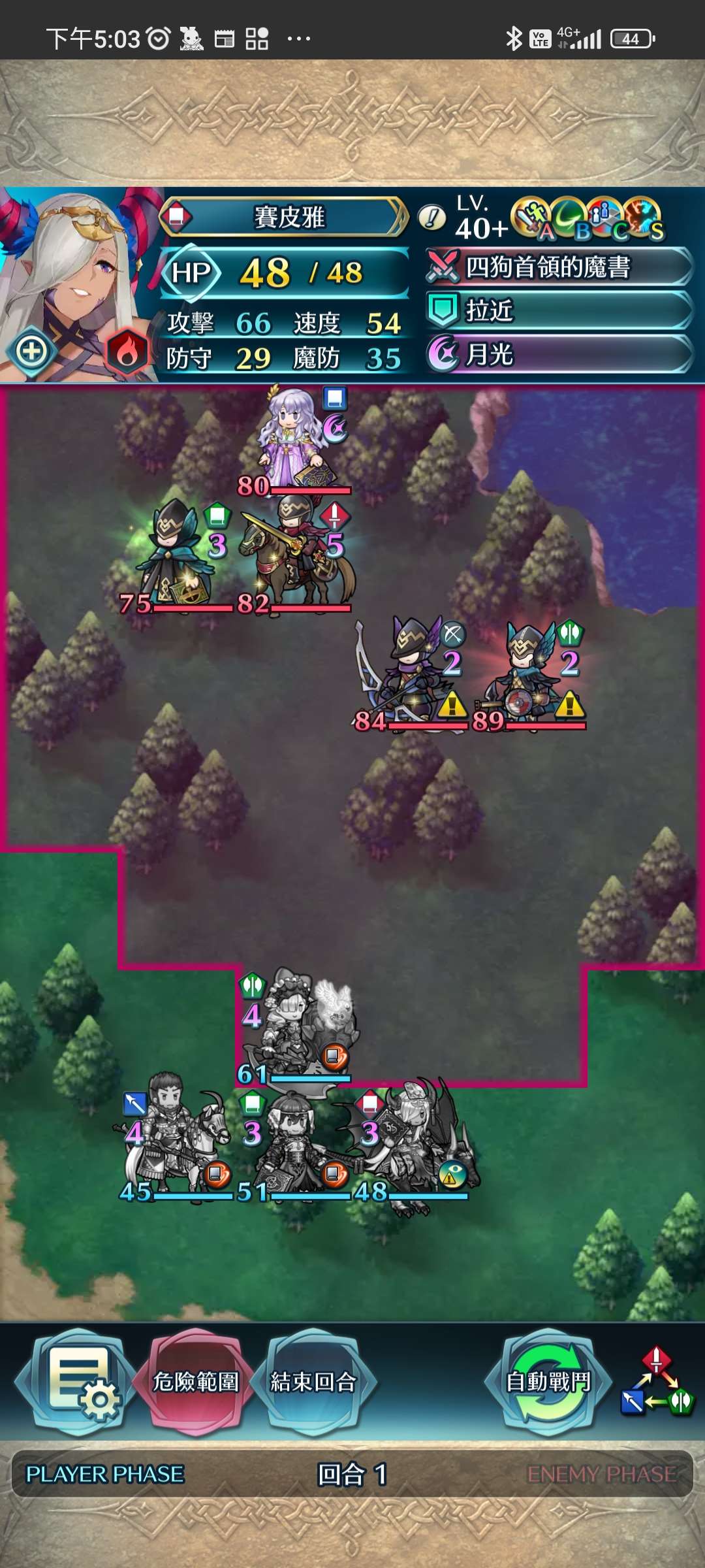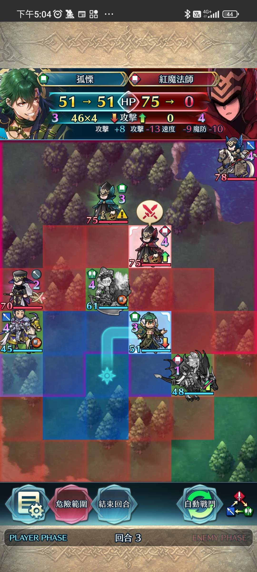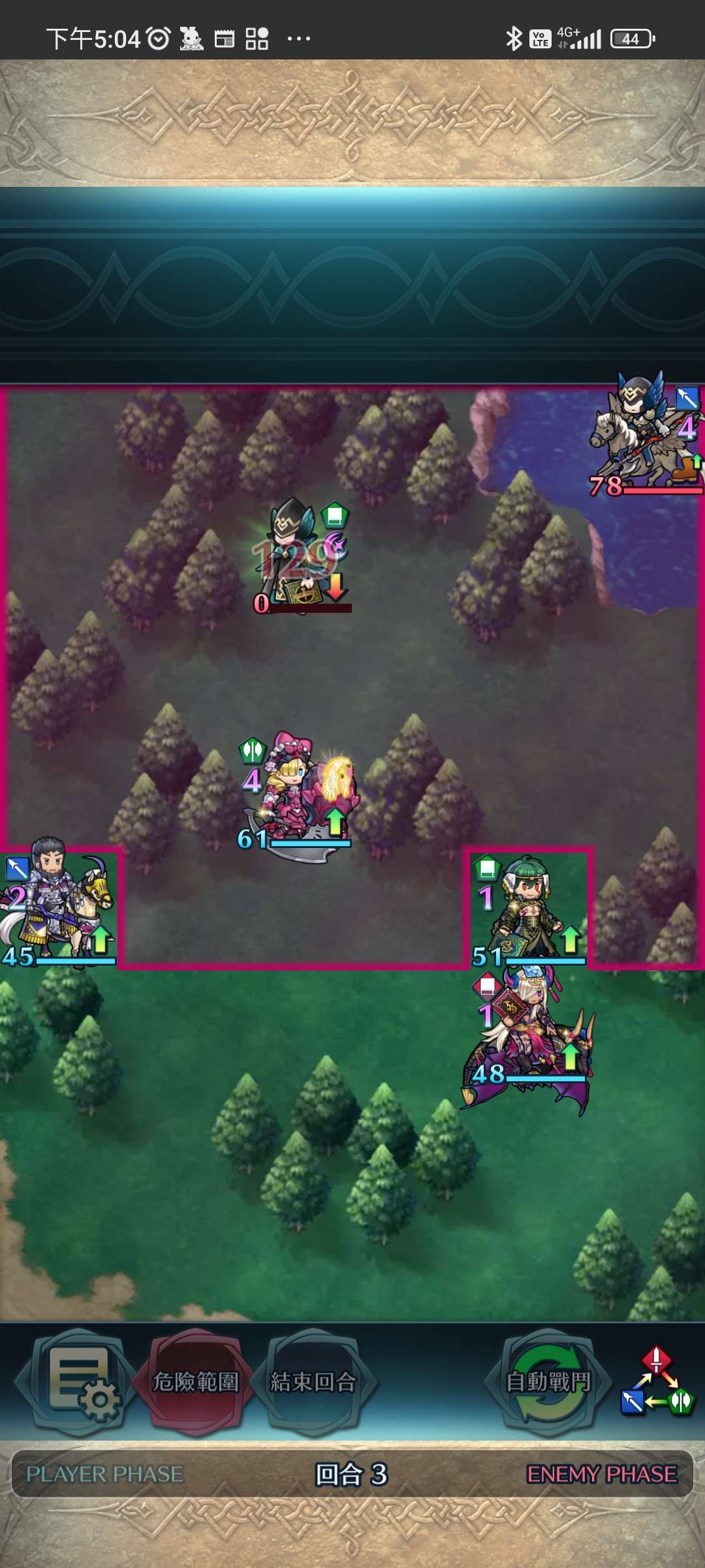 第四回合,賽皮雅殺步斧,孤慄殺飛槍,莫布殺飛弓。敵全滅,完。