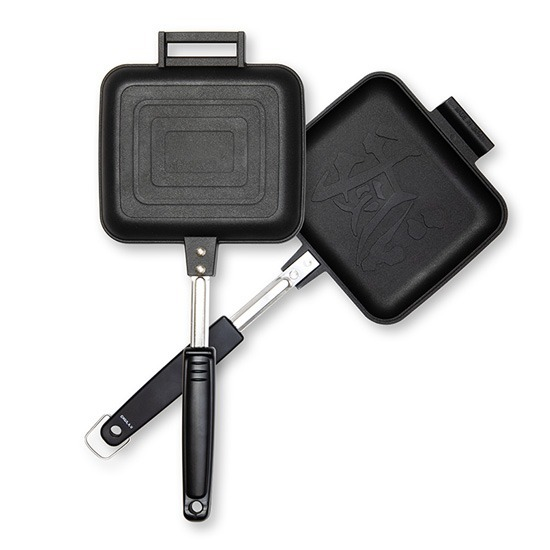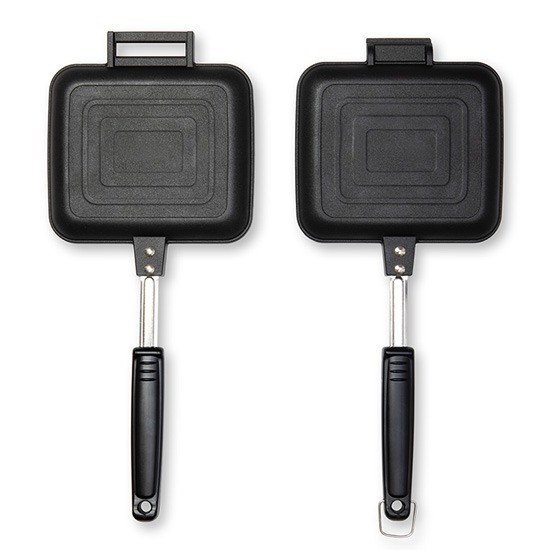 這個只要把食材放進考盤中,再把上下烤盤夾好,放在火爐上並左右翻面尖就好了呢!