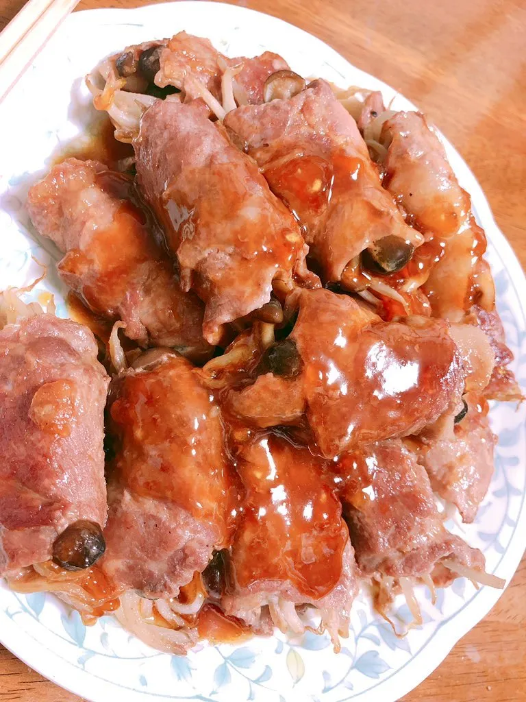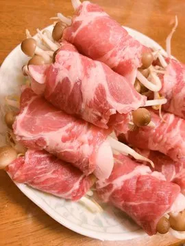 〇用切薄的豬肉片將內餡(香菇/蘆筍/洋蔥/馬鈴薯/茄子…等你喜歡的)卷起來