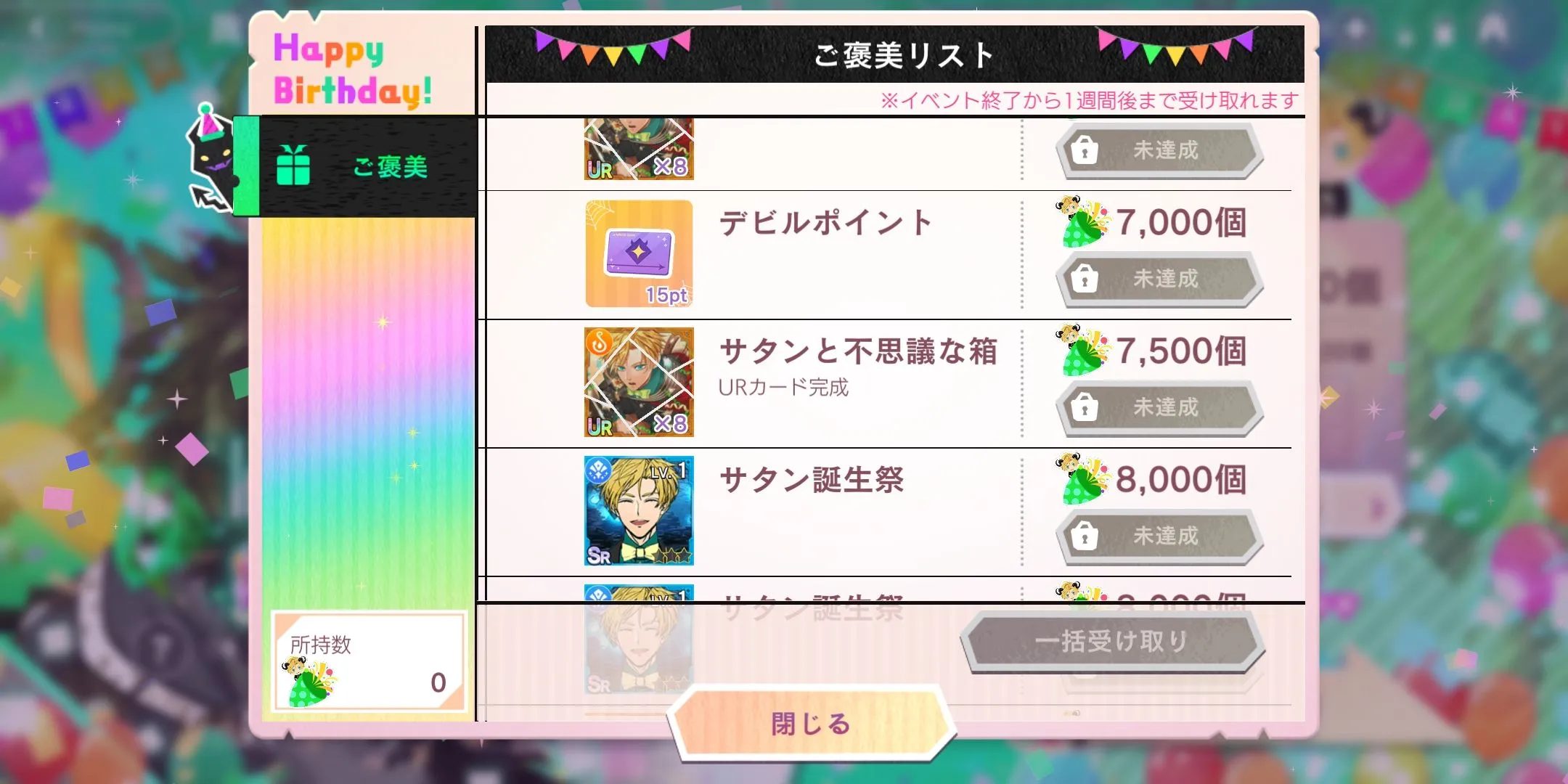 Satan生日活动(20.10.15-10.21 14时)