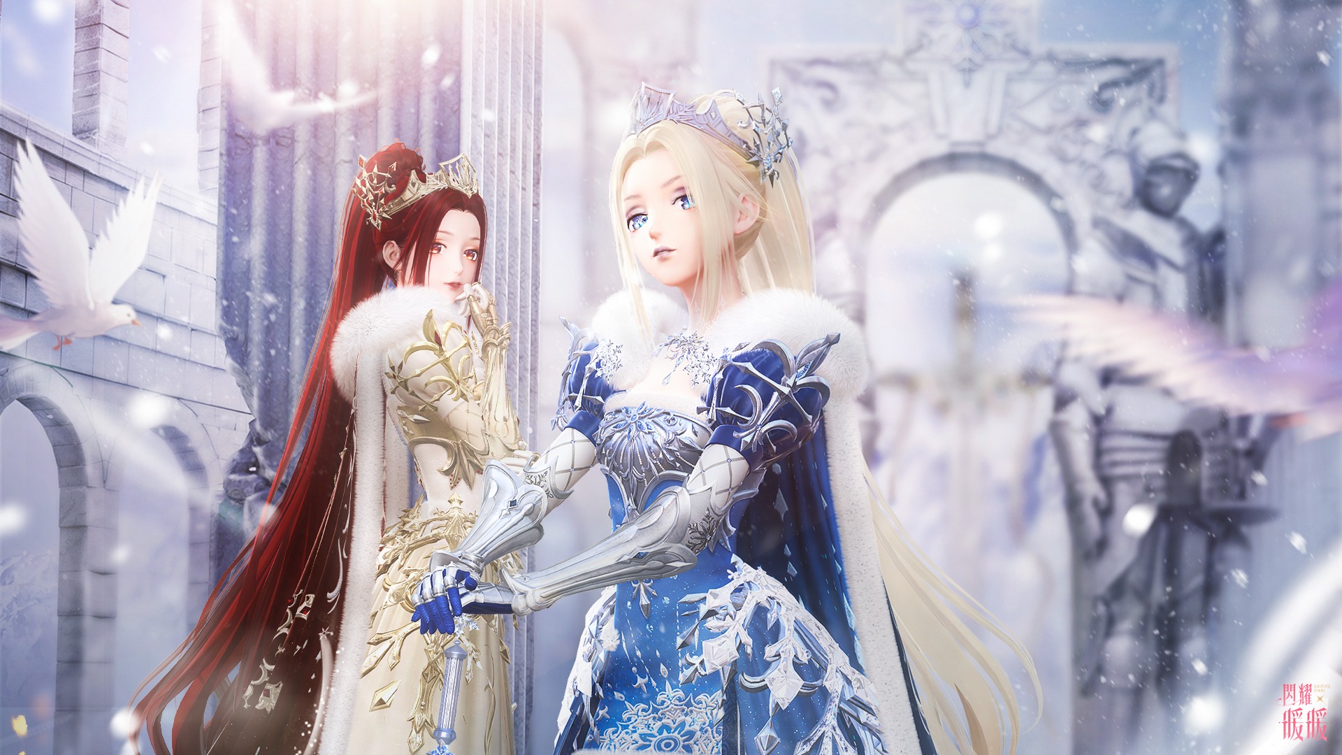 有歌聲飄蕩於雪原的凍土上,她看到名為尤妮金娜的少女,身著鎧甲手握冰藍長劍,還懷抱著一束雪青鳶尾花……