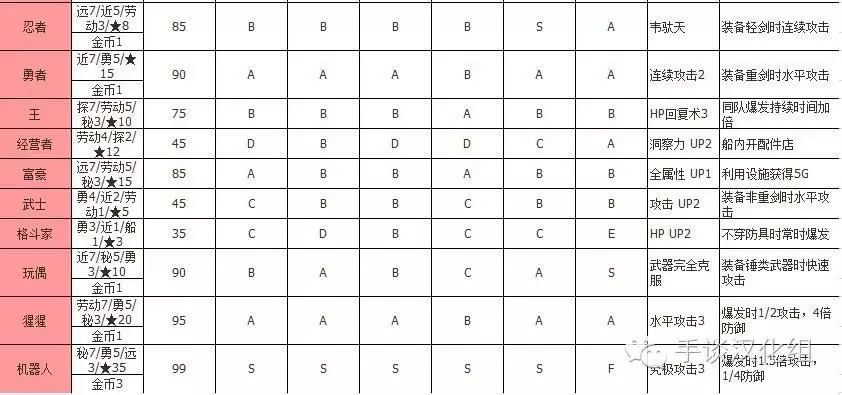 職業信息詳細列表: